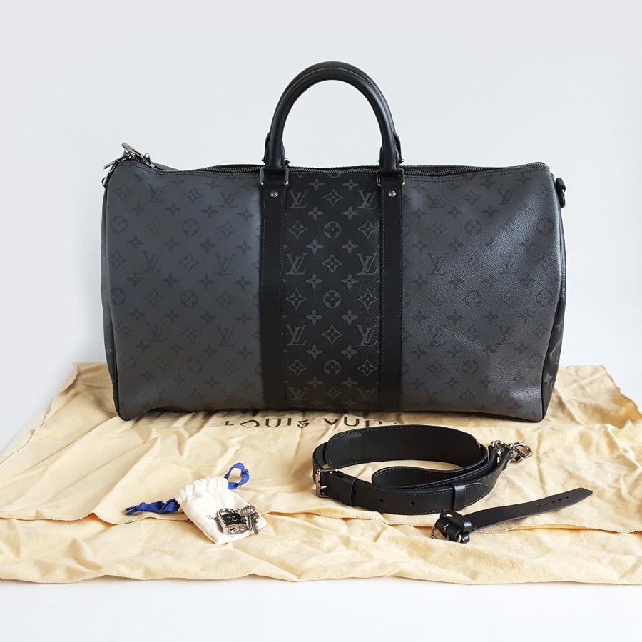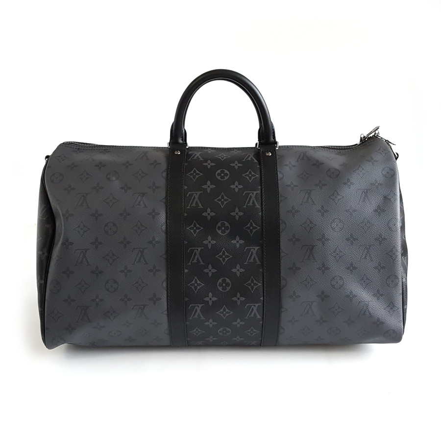 【98新闲置】LV路易威登KEEPALL BANDOULIERE 50旅行袋M45392黑武士限量色黑老花旅行袋keepall50单肩手提包男士 191225AK01