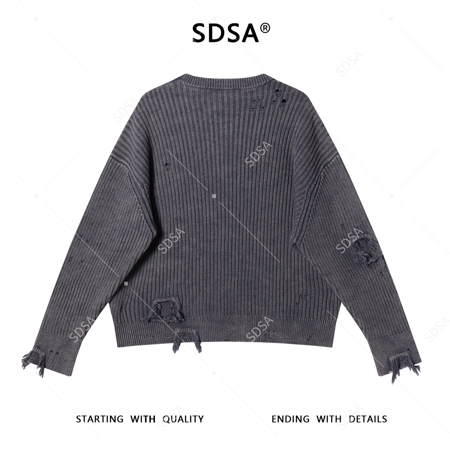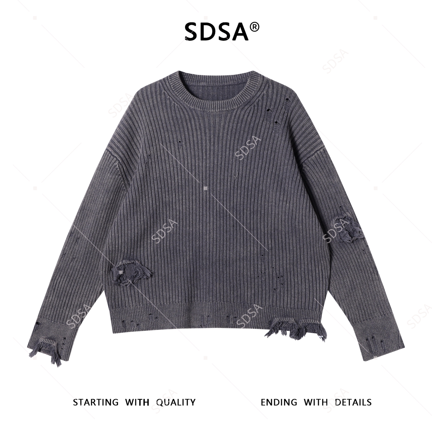 SDSA男士秋冬新款痞帅男装潮牌破洞流苏圆领针织衫百搭慵懒风毛衣