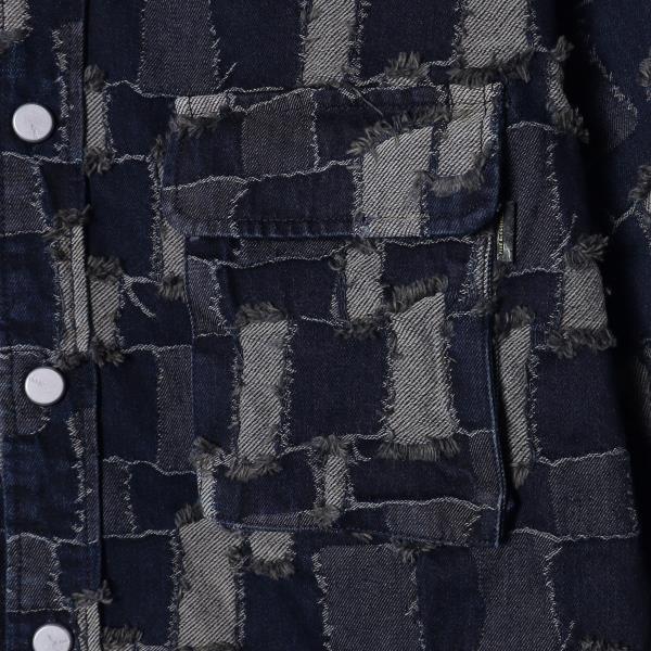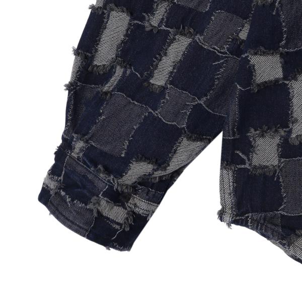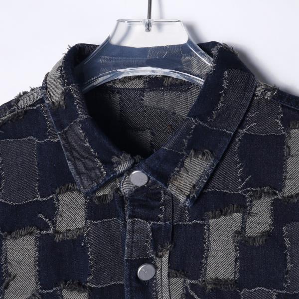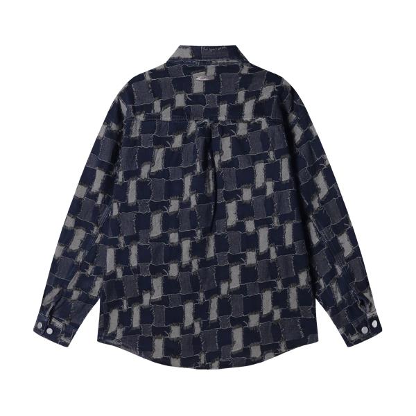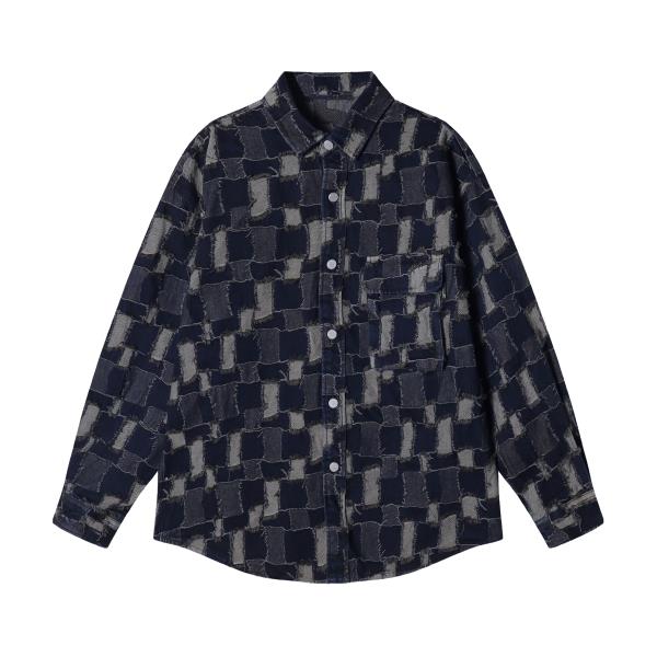 CS201秋冬季新款牛仔衬衫外套潮流时尚个性拼接格子长袖衬衣男装