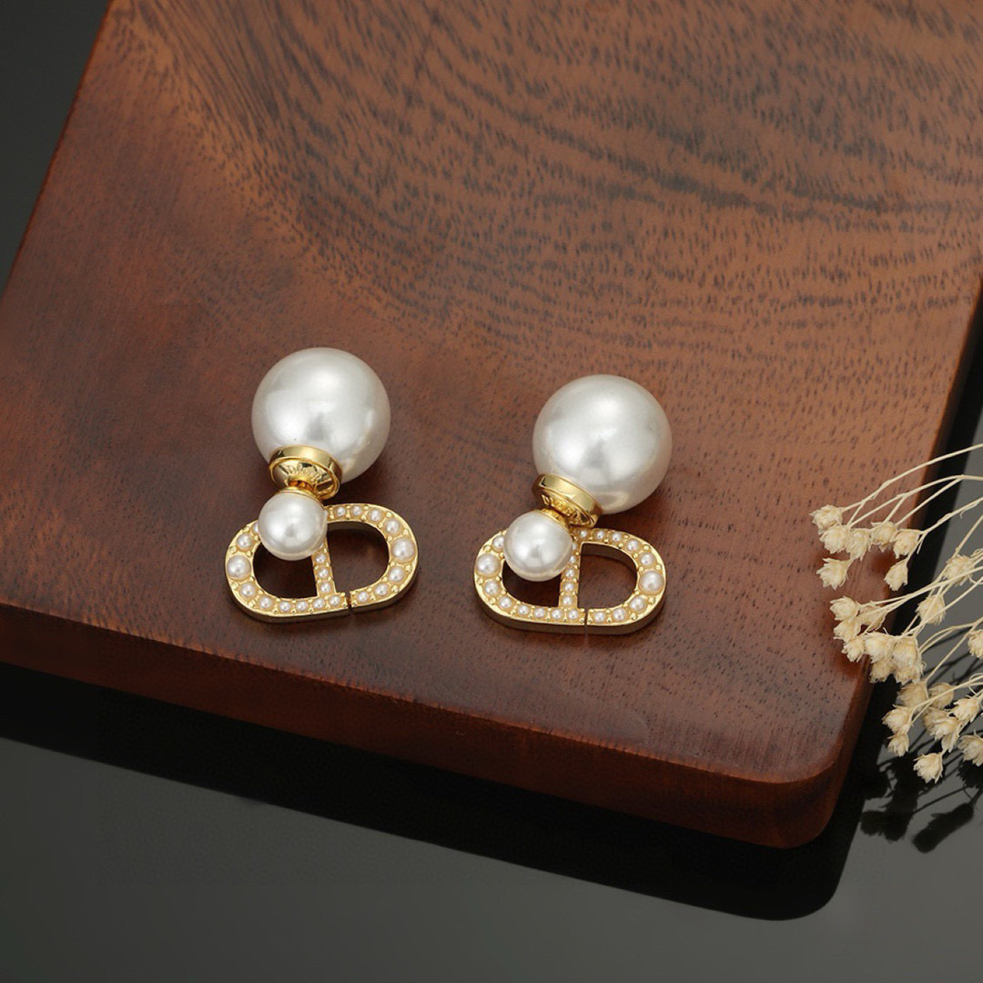 DIOR迪奥 经典字母标识精致 珍珠耳环 女款 金色(SJ)
