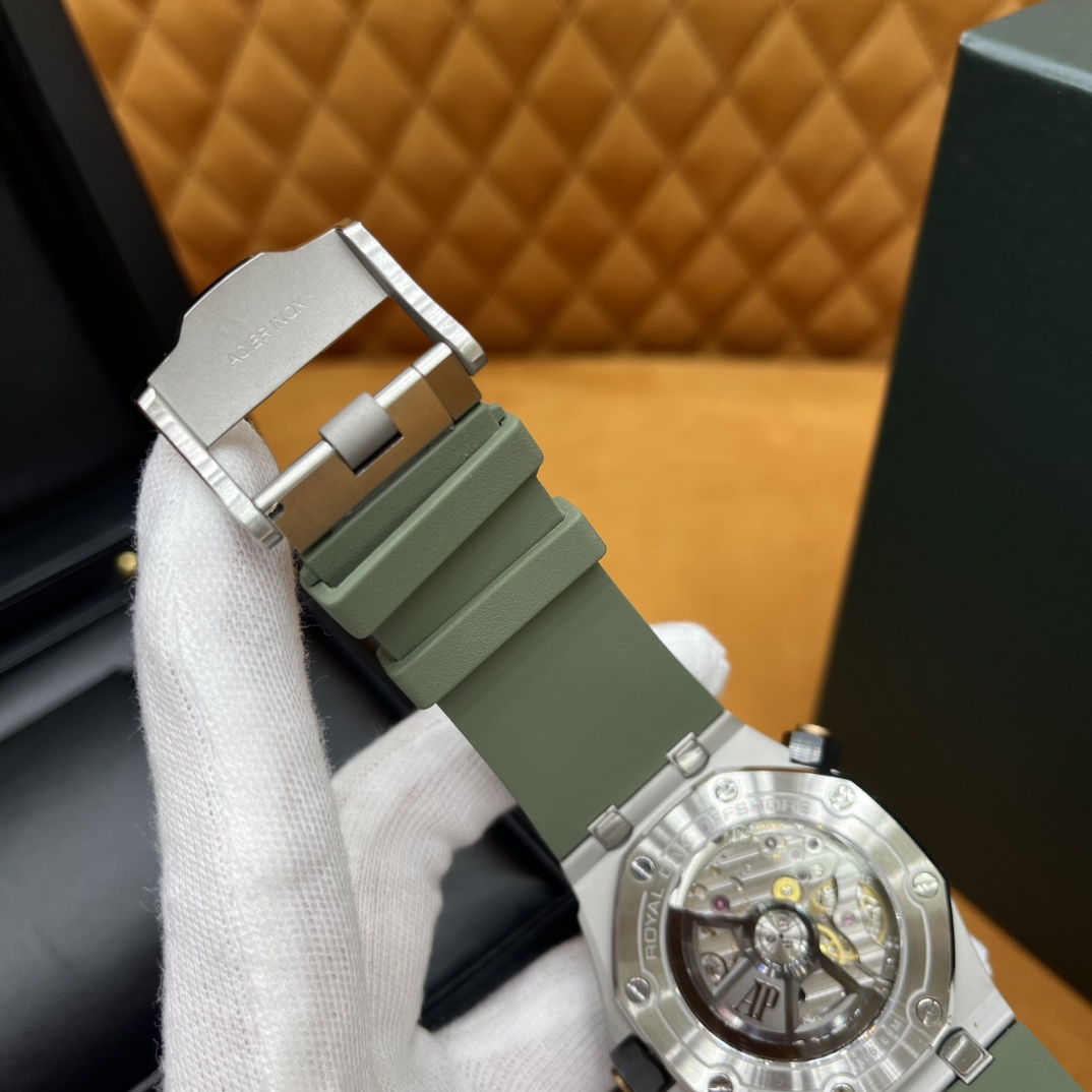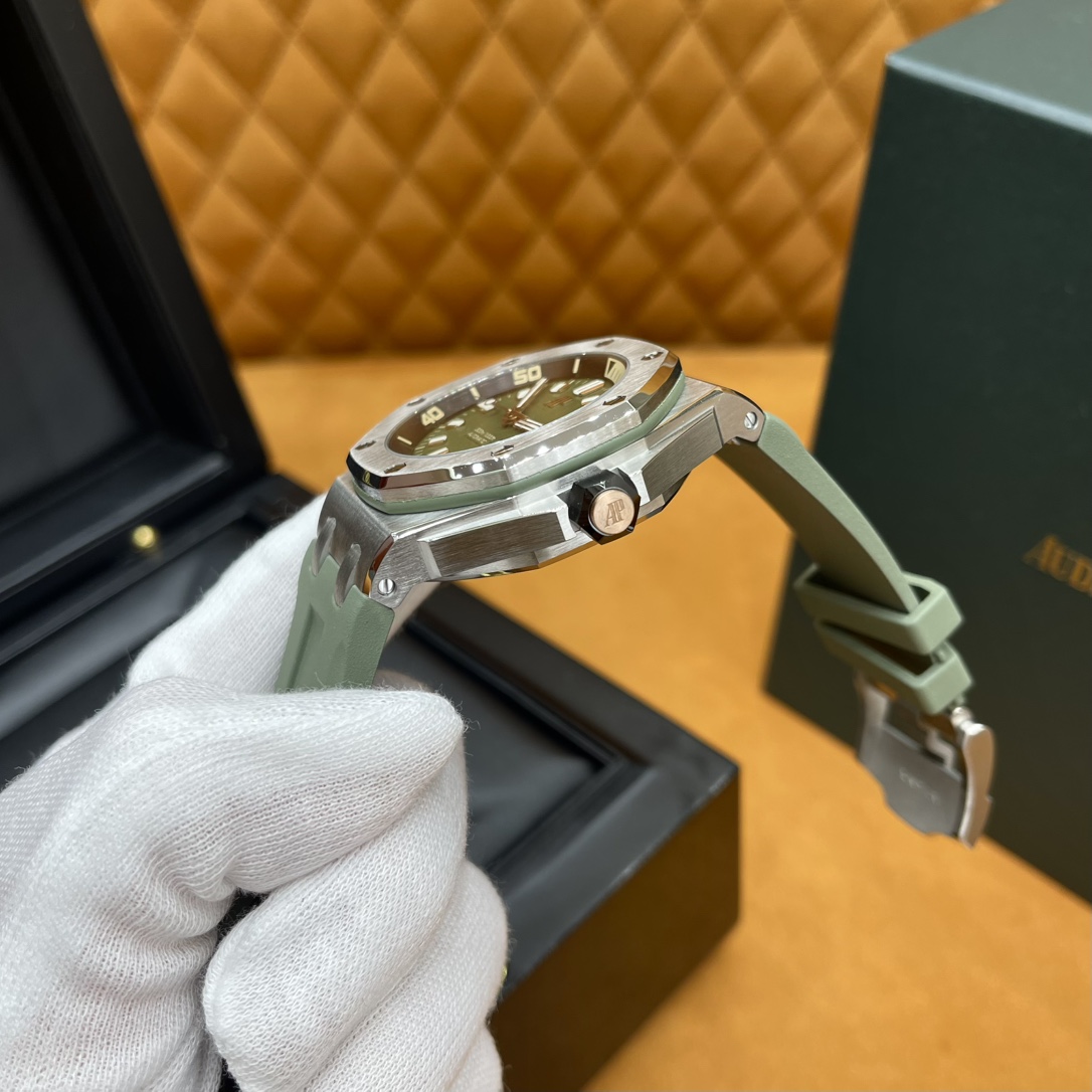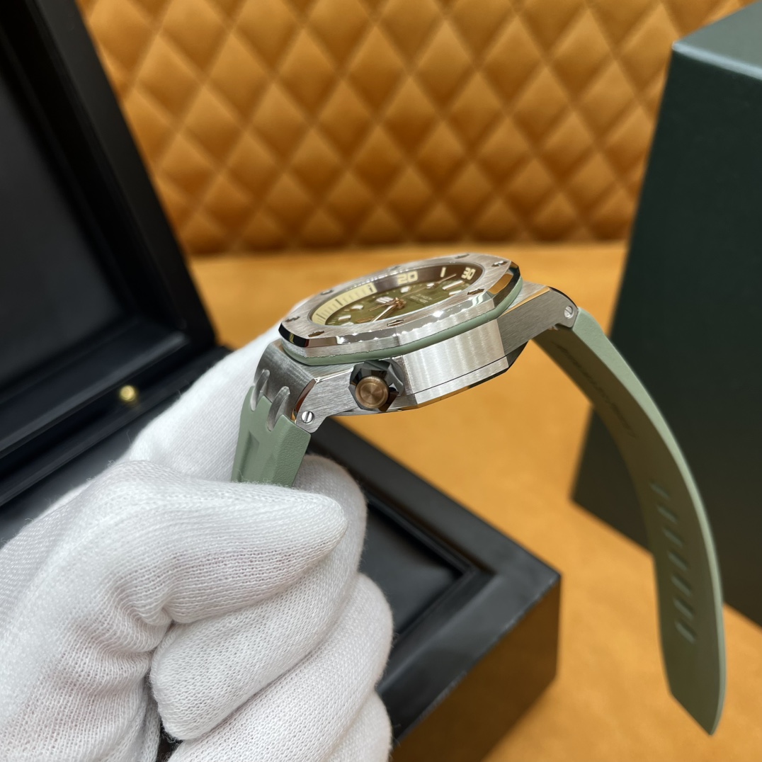 🏷️爱彼AP15703 一代“钢王”不愧是我,毫不心虚的认了!原版最新版本拆解重新定制,一直不断尝试不断修改确保达到原版的品质! 当时这款腕表价格139000,精钢表壳打磨做拉丝效果,看着非常有质感,棱角的设计,八颗螺丝下沉几乎和表面平行,表带也是原版一样的颗粒效果,很耐造,平时旅游都能带上,特别好看,谁戴谁有品! 订购原版CAL.3120机芯,机芯夹板 指针专业打磨非常精细没有毛刺,工艺细节都跟足了 尺寸42mmX14.1mm