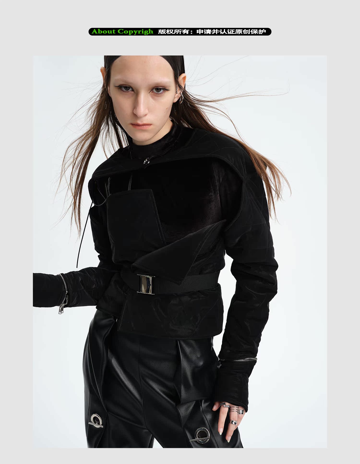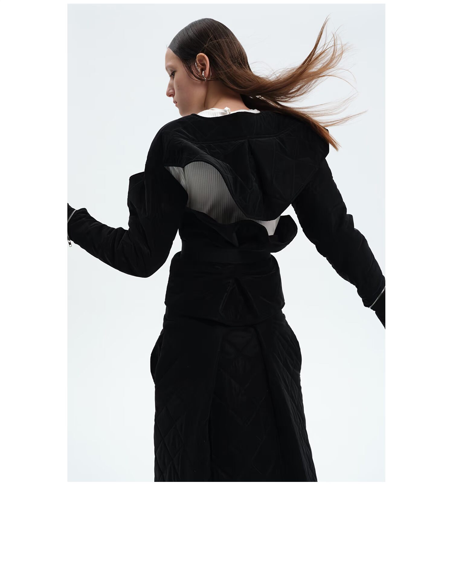 启世录TIWILLTANGMIRROR原创短外套女季立体绗缝两件式裹胸棉上衣