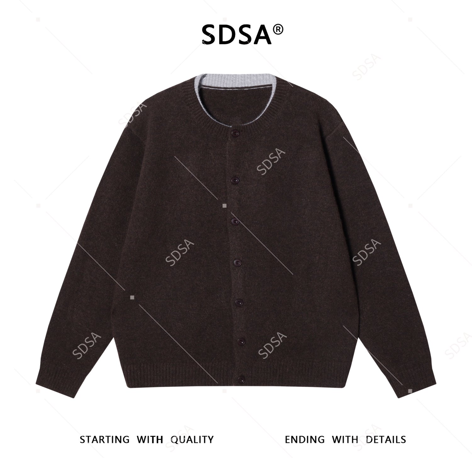 42516SDSA男士秋冬新款痞帅男装复古撞色纽扣开衫假两件针织衫百搭毛衣