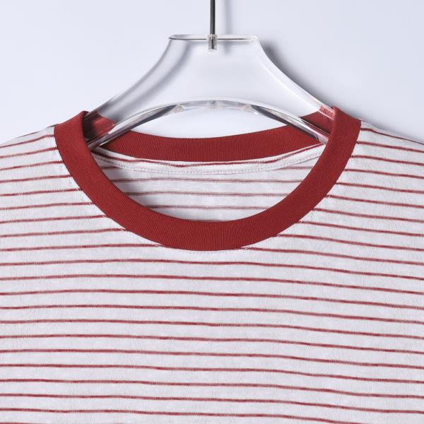 T3706夏季高级感新款男士十字条纹半纽扣短袖T恤舒适百搭潮牌圆领上衣