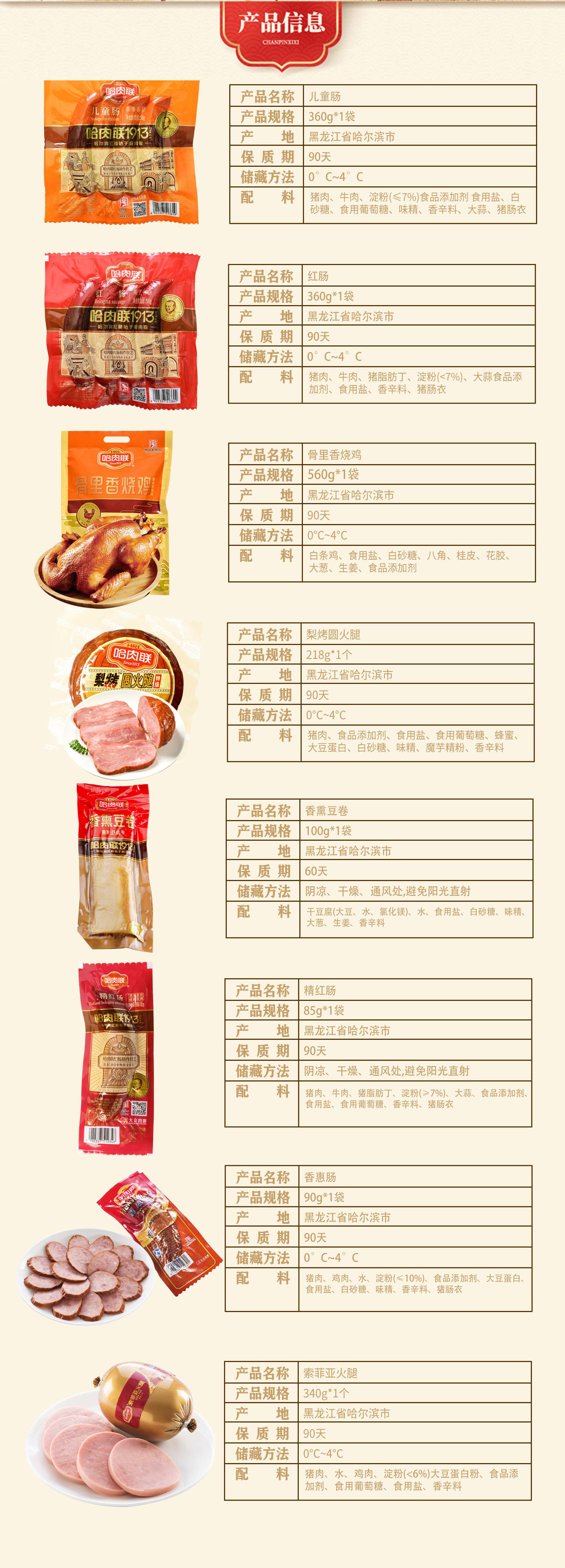 【2.7-2.23停止发货】正宗哈尔滨特产哈肉联缤纷红肠礼盒(总共8款重量为2113g)香惠肠无货时会替换同等价位的红肠!无质量问题不接受退货退款