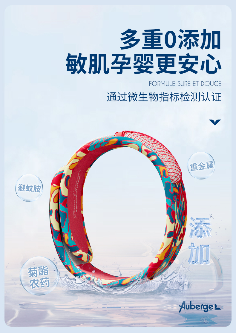 【品名】Auberge驱蚊手环(两个手环+4枚替换芯+5ml驱蚊喷雾)