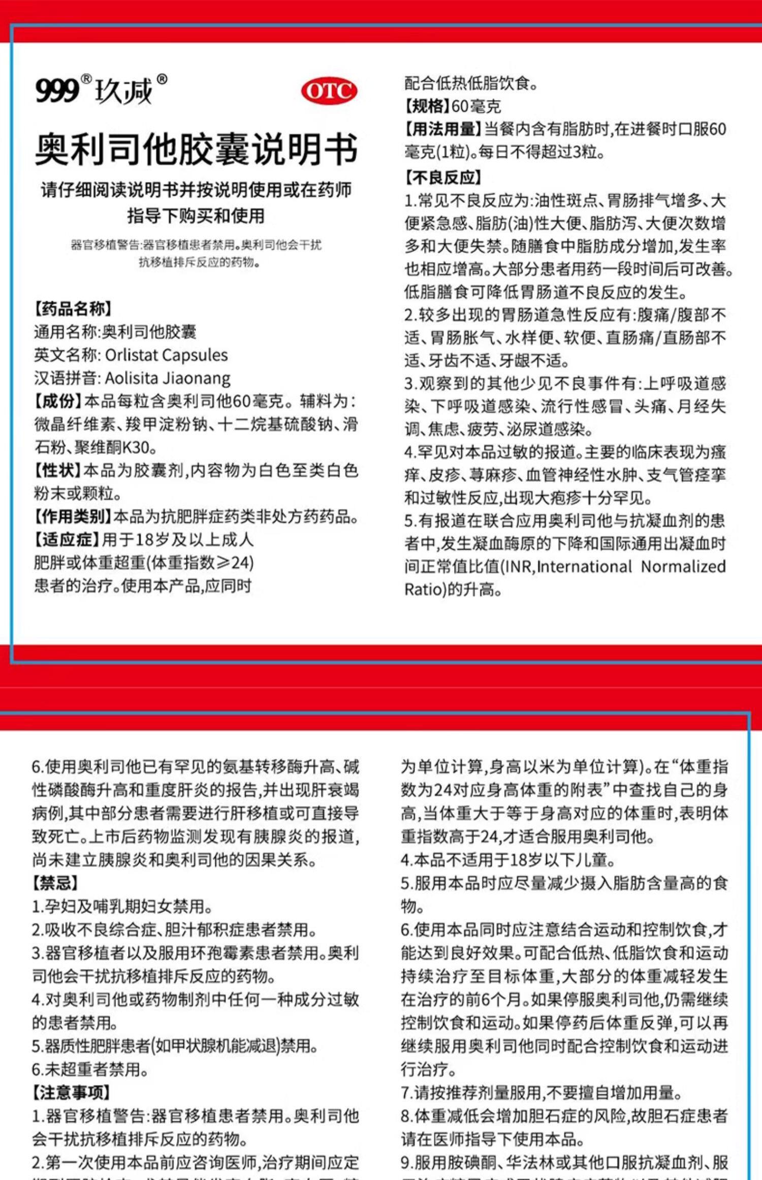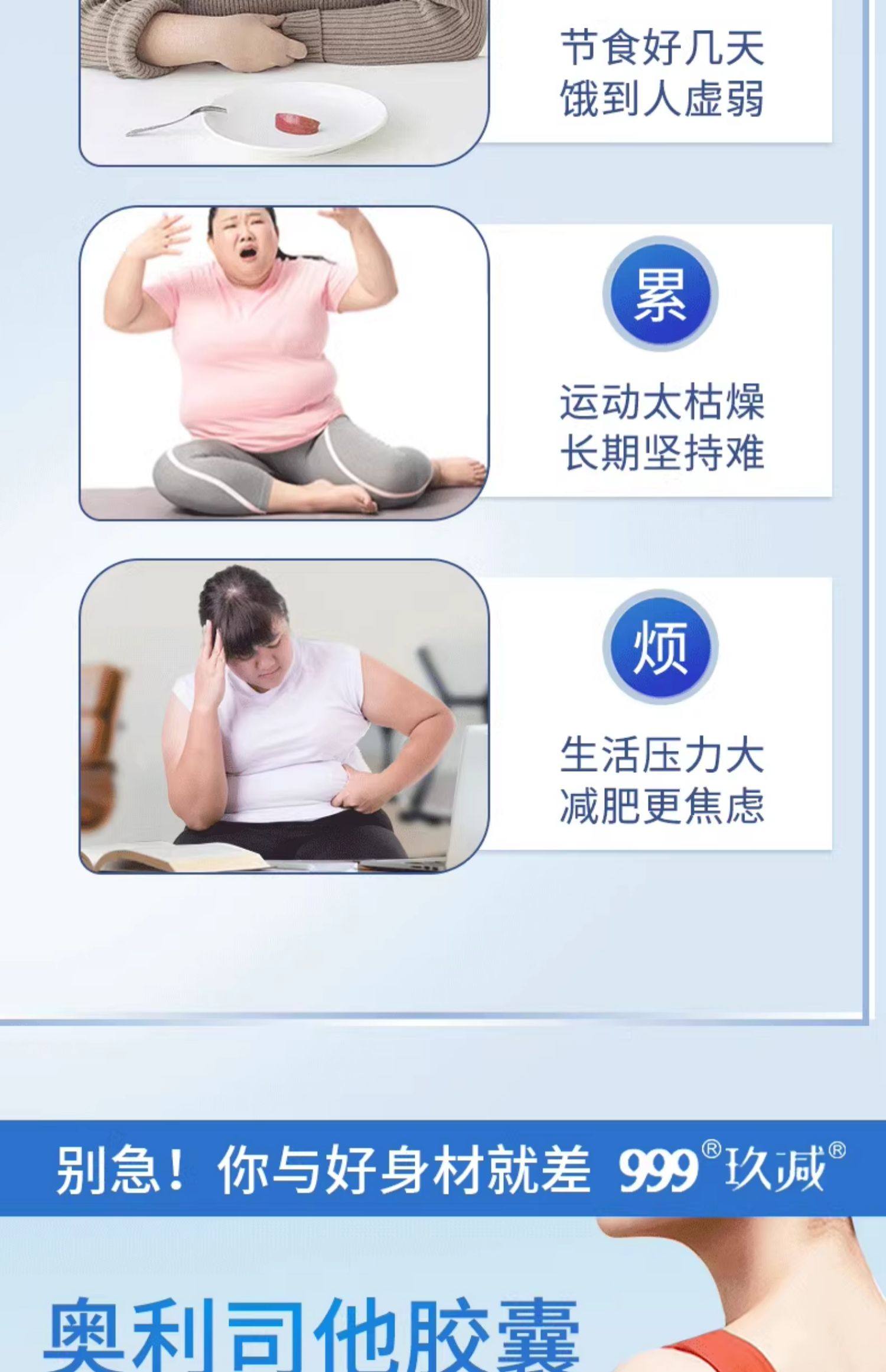 999玖减奥利司他减肥胶囊正品燃烧减脂药男女肥胖排油瘦身旗舰店
