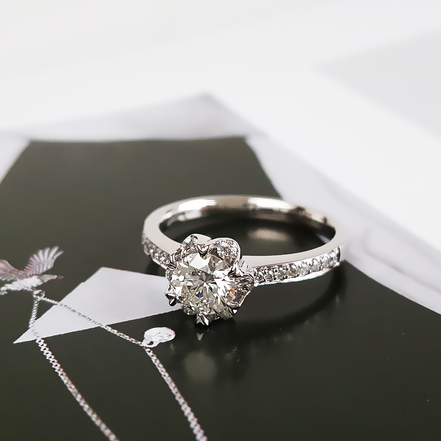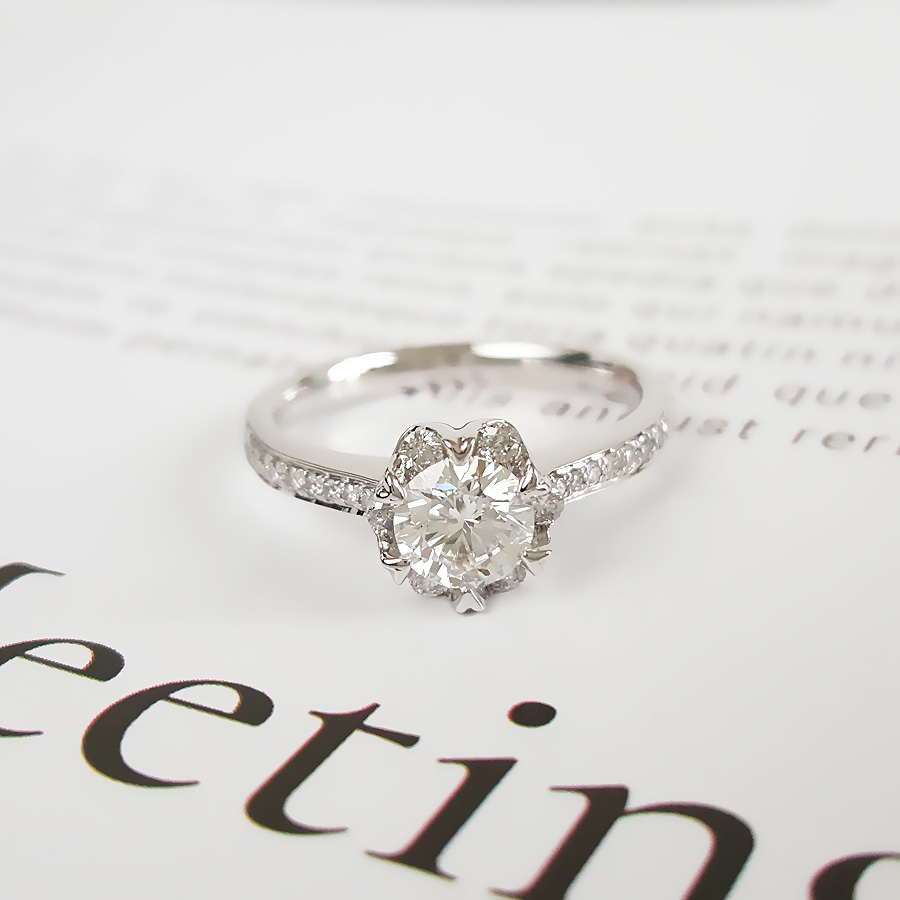 款式 | AU750白金时尚简约六爪款花朵造型0.60克拉钻石戒指 |