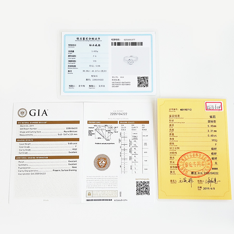 证书 | GIA证书、国测检验检测(南京)有限公司证书 |