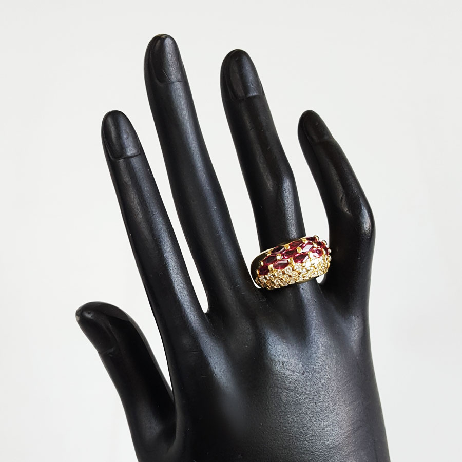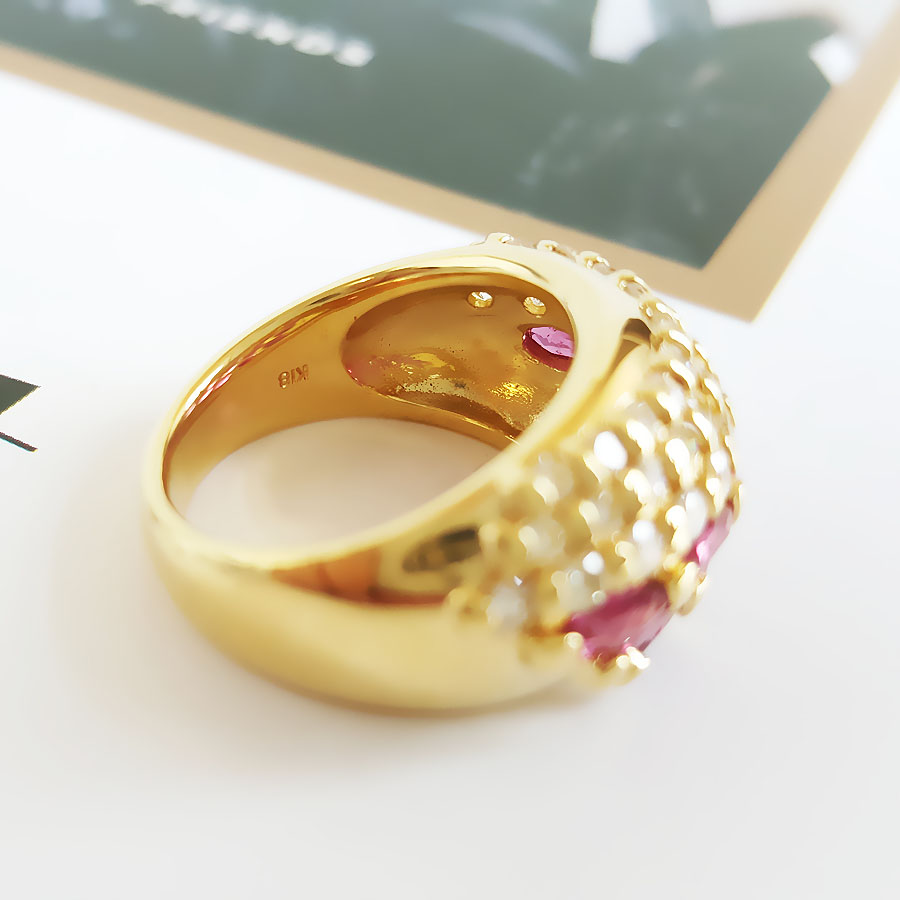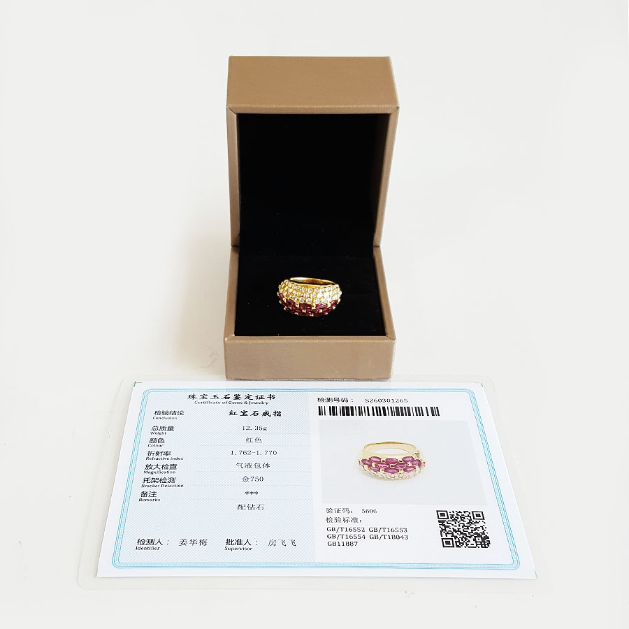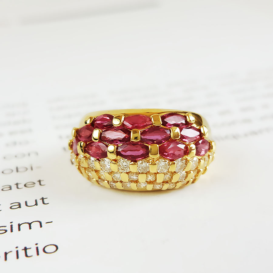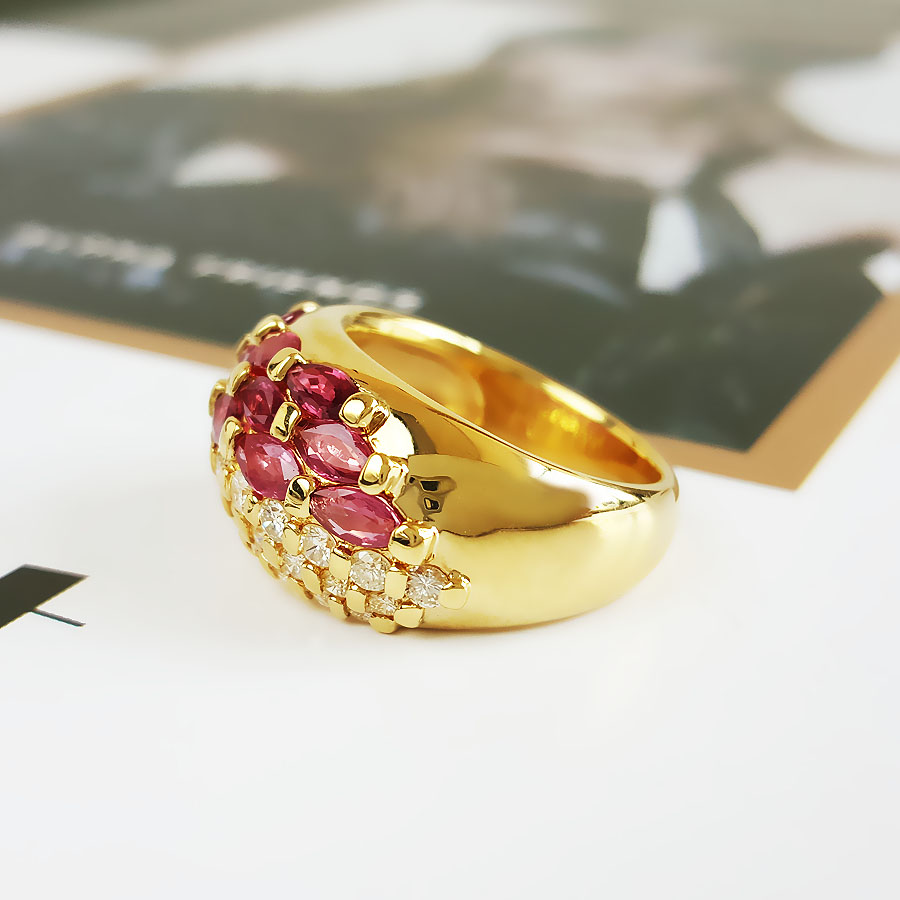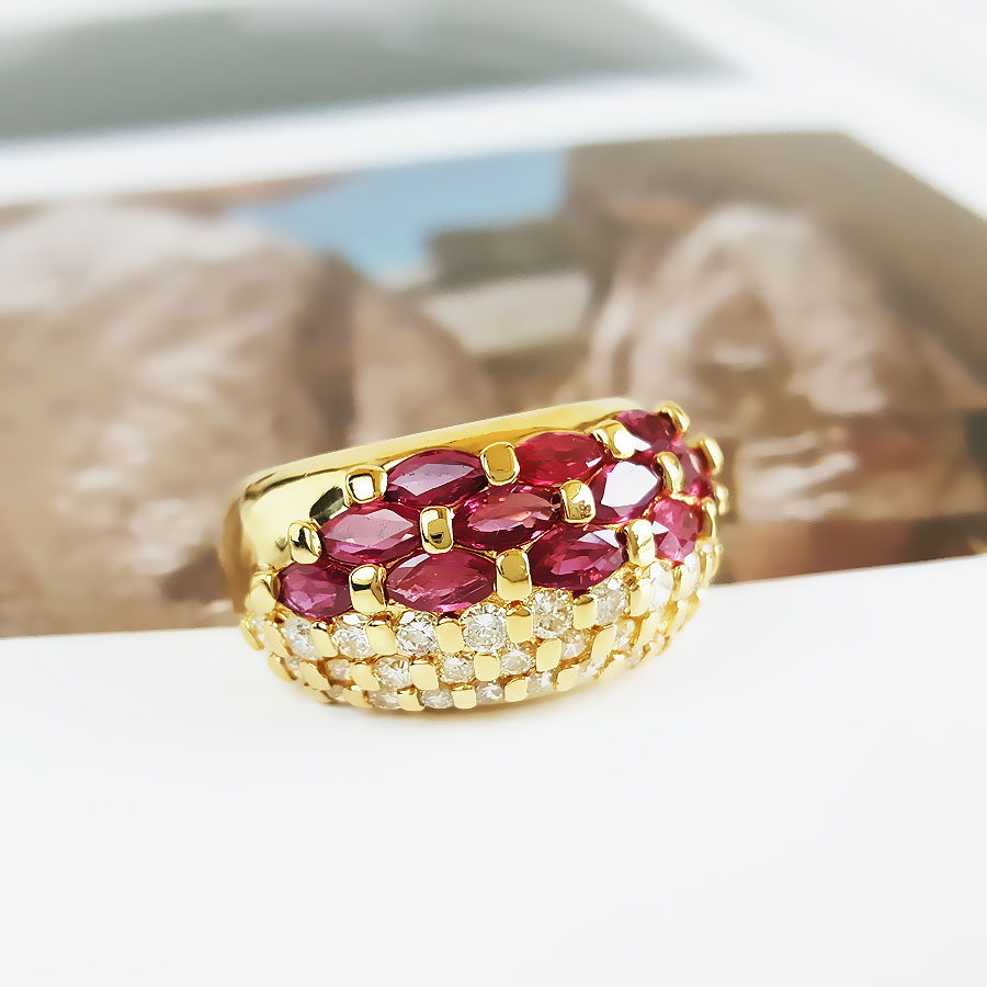 名称 | AU750黄金镶钻群镶天然宫廷风设计师款宽版1.21克拉红宝石戒指 |