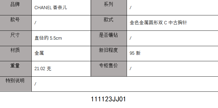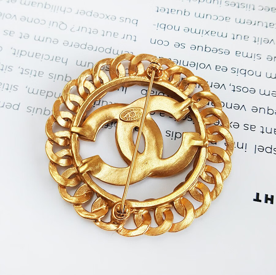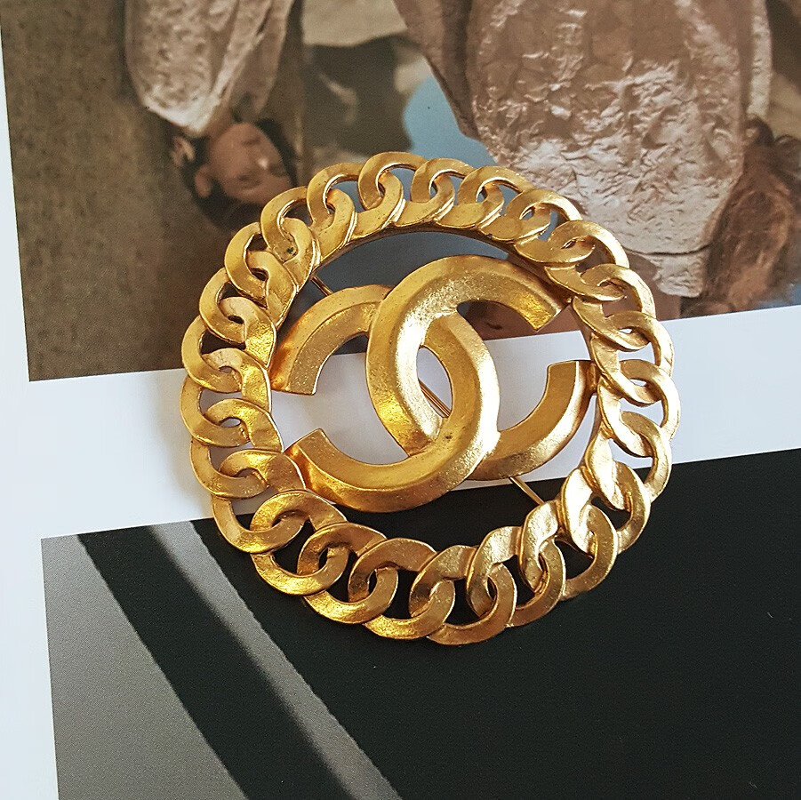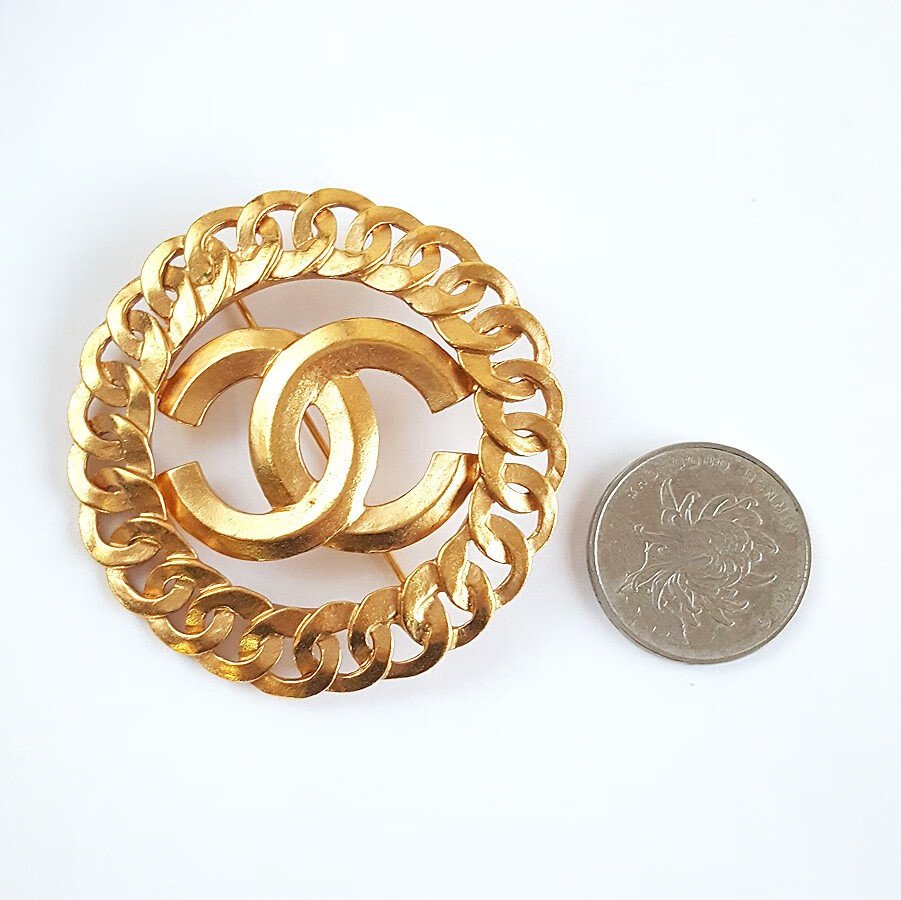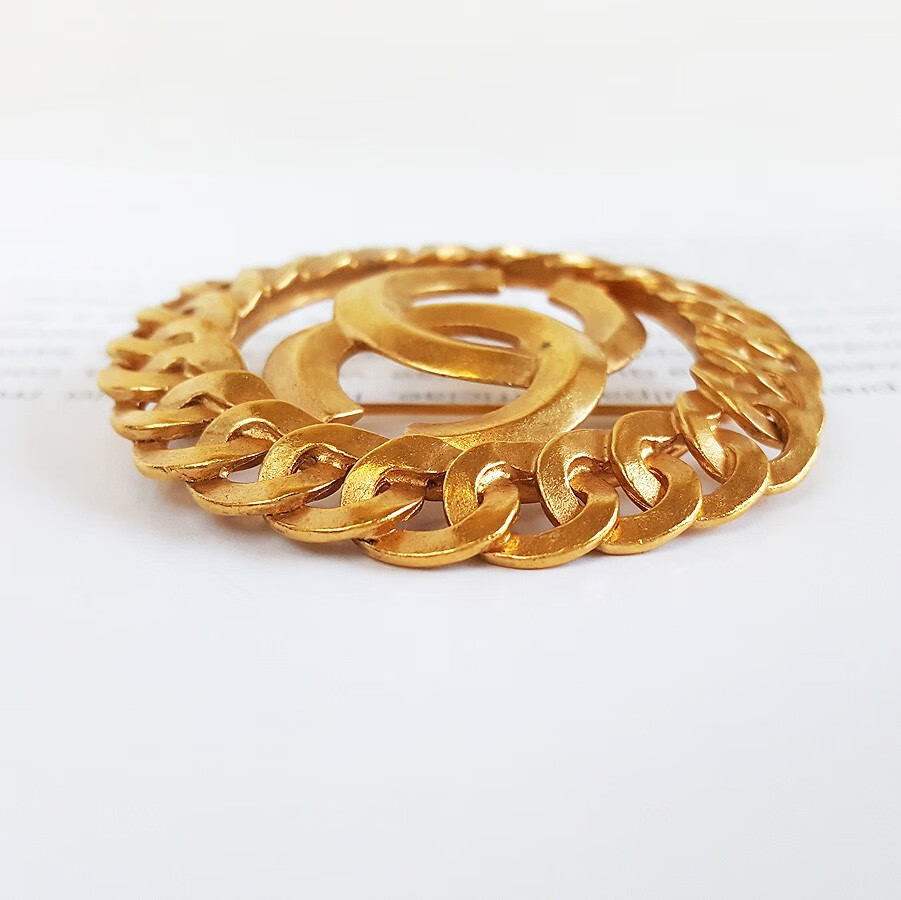 【95新】CHANEL香奈儿金色金属圆形双C中古胸针 111123JJ01 特价