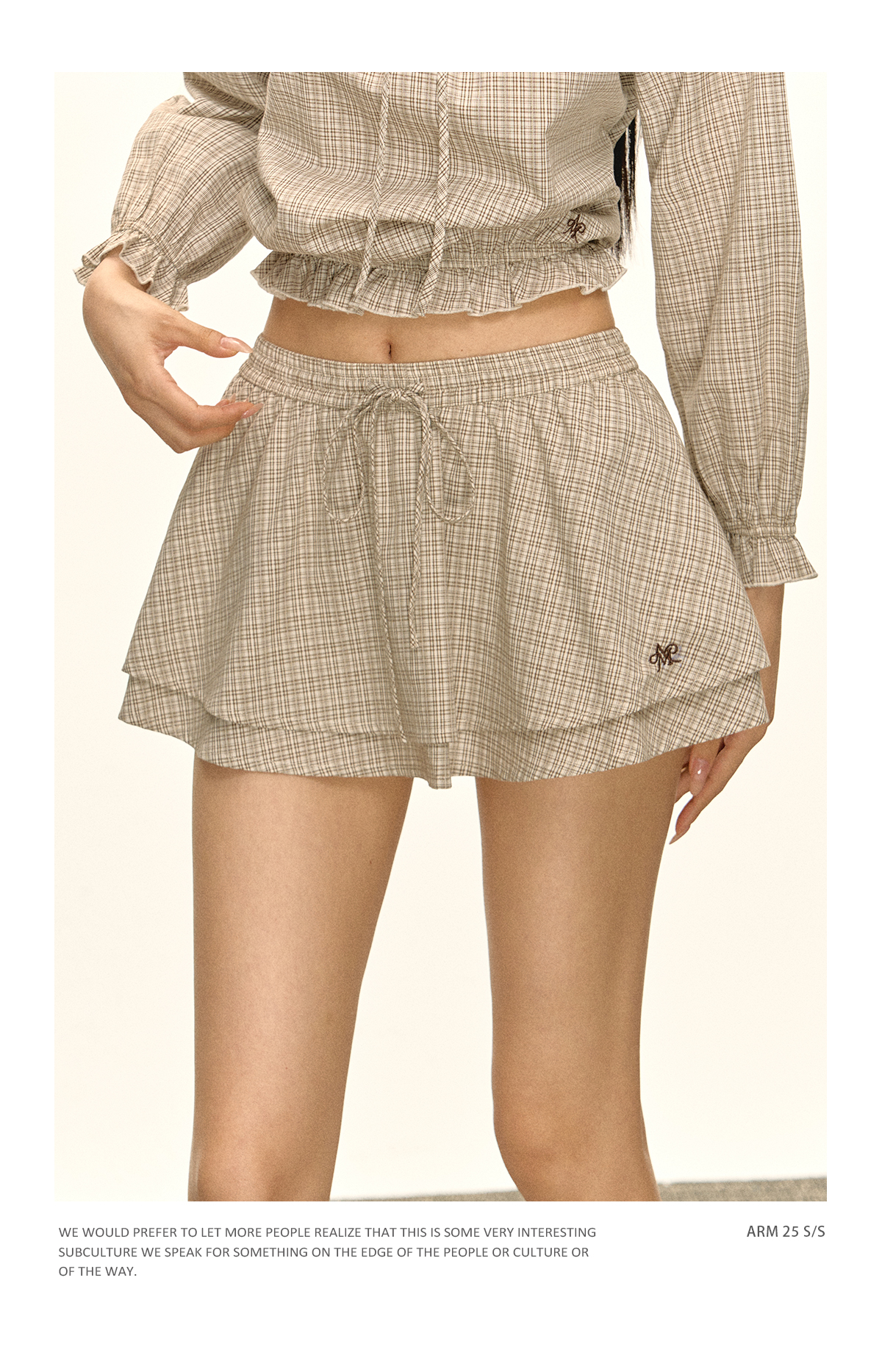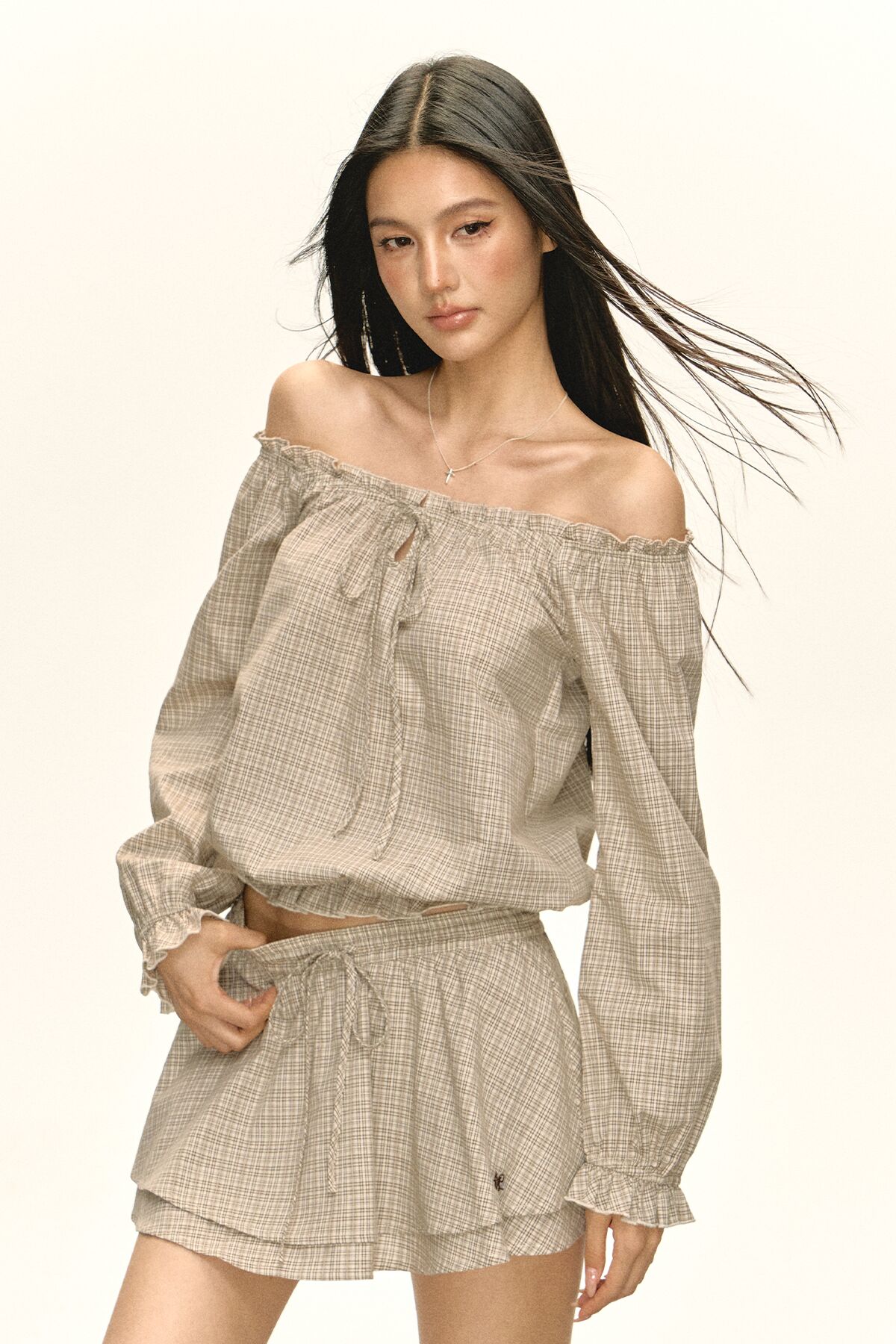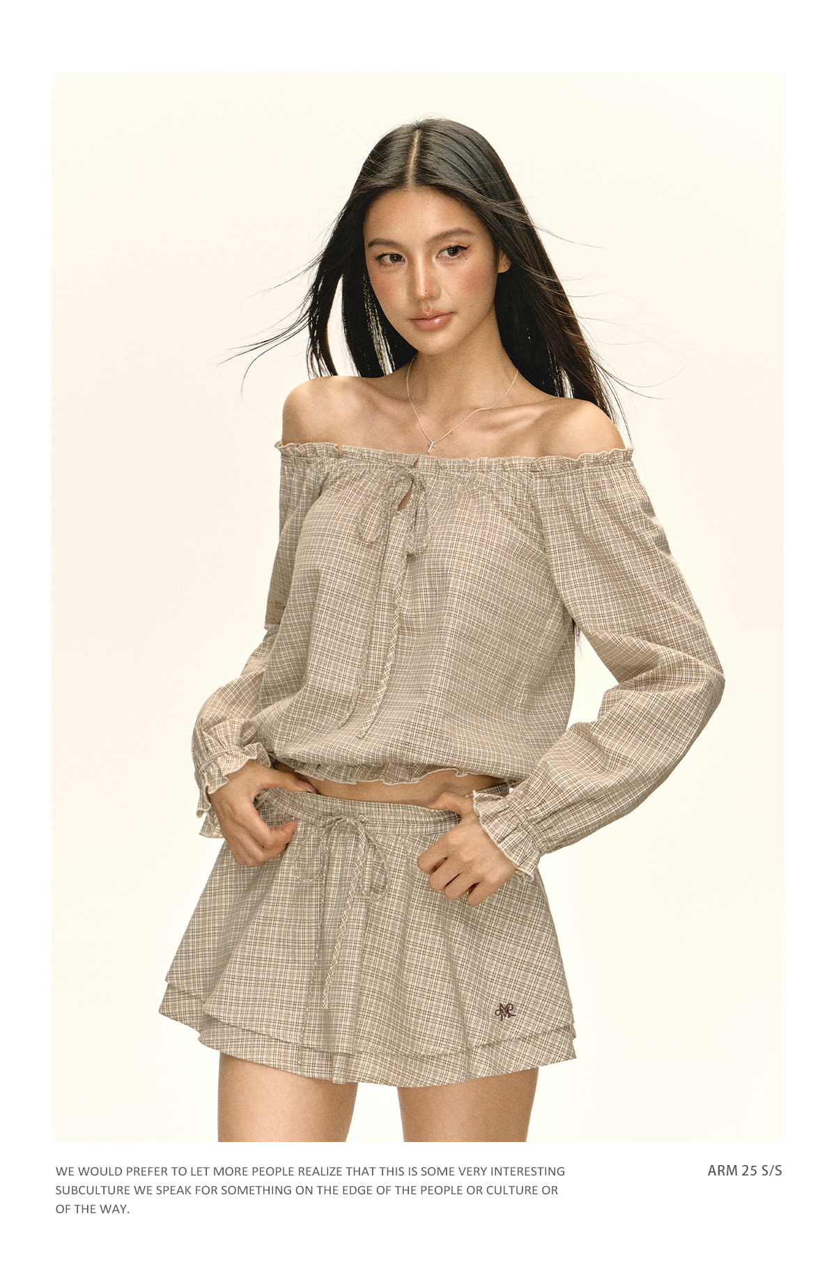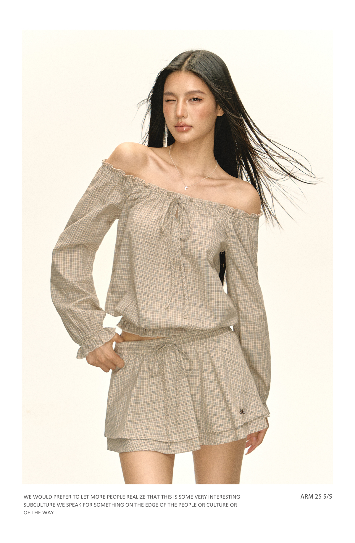 Ariseism 美式复古一字肩上衣+短裙两件套套装女秋季新款