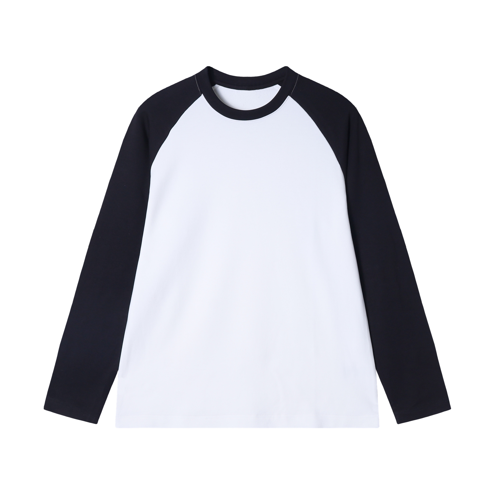 T1862秋季新款时尚个性黑白撞色圆领套头长袖T恤百搭休闲宽松上衣