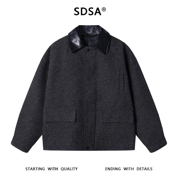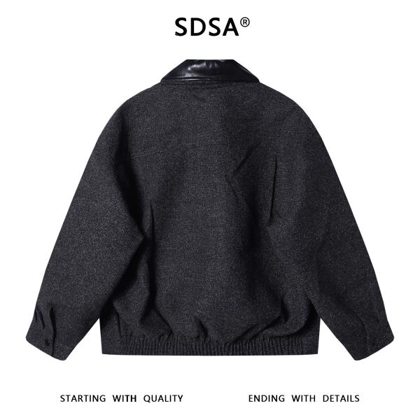 26176SDSA男士秋冬新款痞帅男装美式简约拼皮翻领设计夹克外套复古百搭