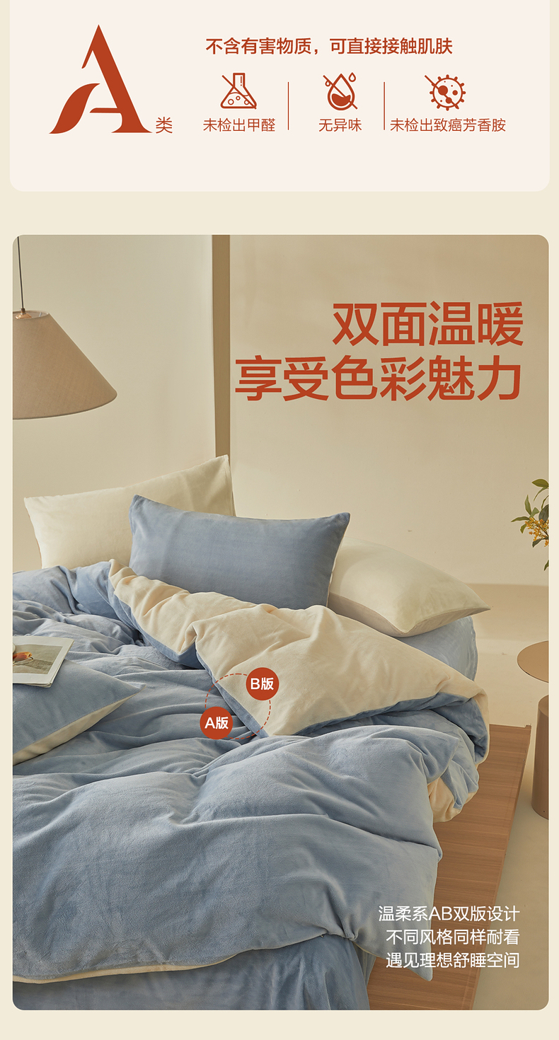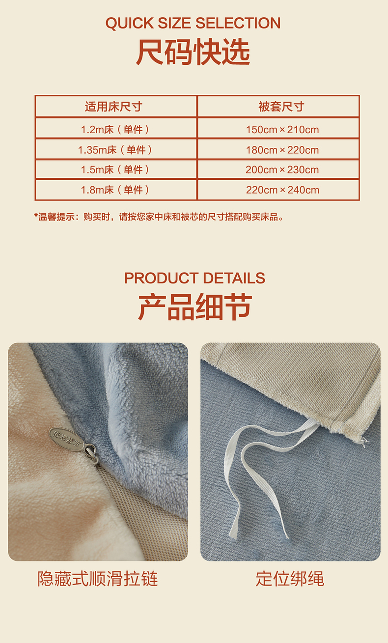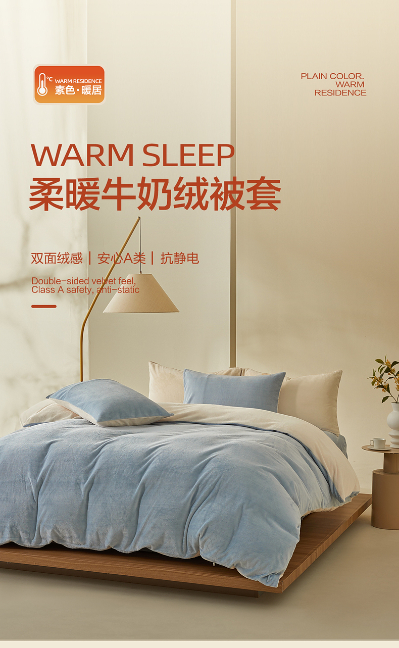 水星家纺 新品抗静电牛奶绒被套单件 A类暖绒被子罩秋冬保暖床品