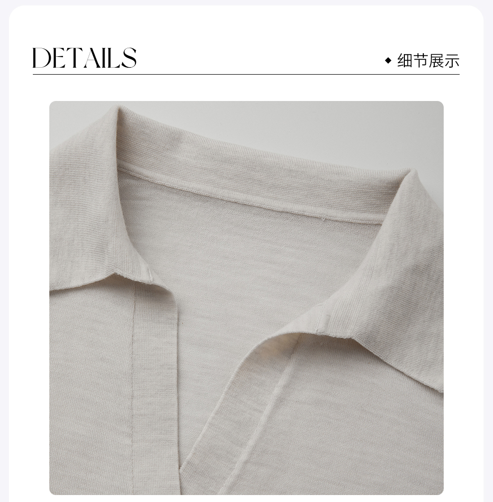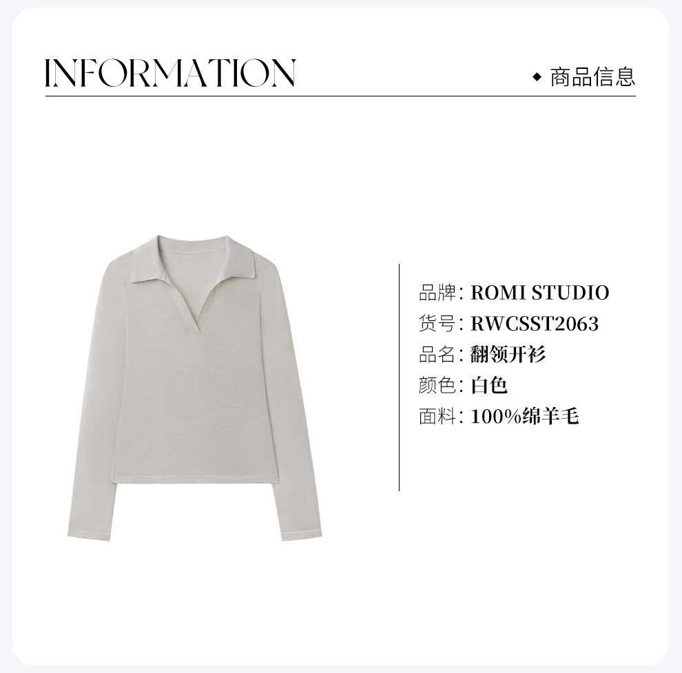 ROMISTUDIO经典老钱100%绵羊毛轻薄翻领长袖针织衫 RWCSST2063