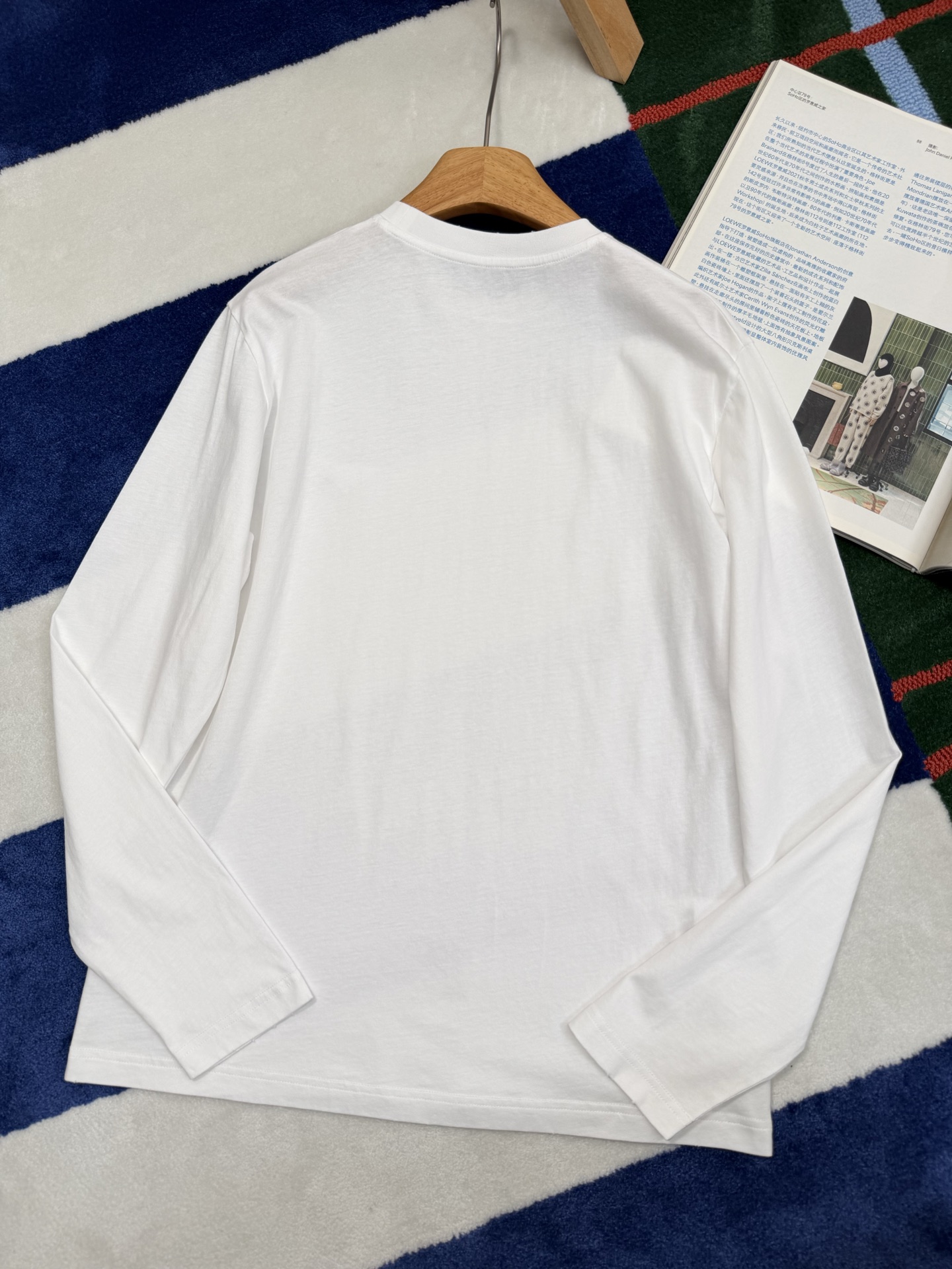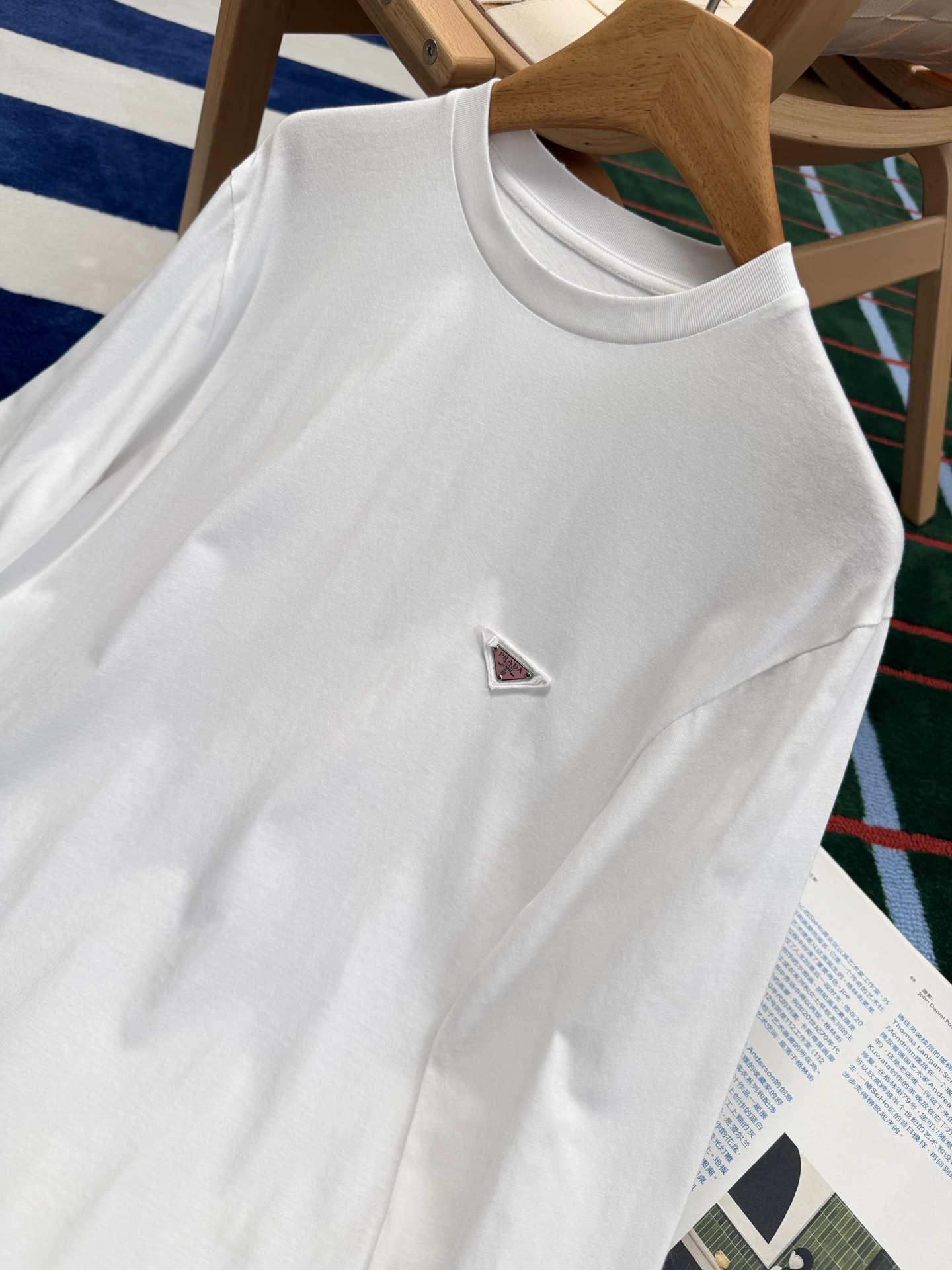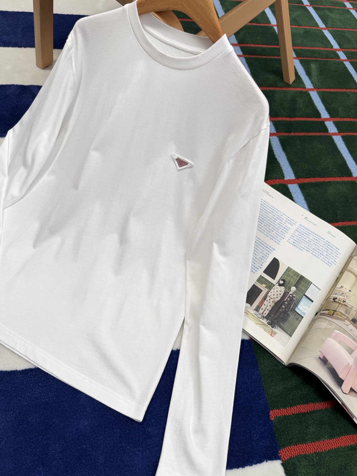 新款 经典再度回归 , 焕新登场‼️三角标长袖T恤,精选柔软亲肤棉质面料 , 领口、袖口及下摆采用重磅做旧洗水工艺 , 细节复古有型~面料透气又干爽 ,质感真的绝绝子,上身超精致, 经典设计永不过时,常穿常新 ,延续极简款式与随性自在的版型 💫 简约中带着松弛感 , 时髦度轻松拉满 ,实在太好搭啦,几乎没有它配不了的下装 😜 不挑人,巨好驾驭 , 强烈推荐‼️黑/白两个色,码数SML