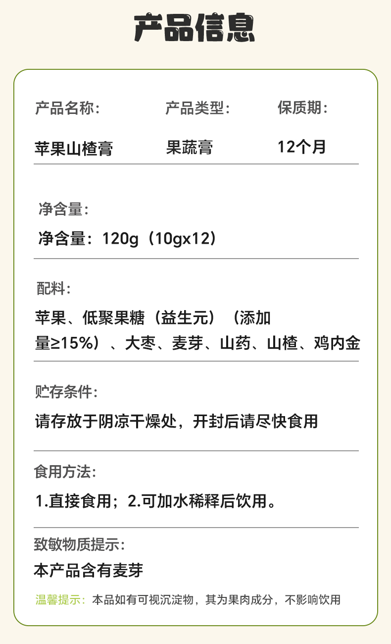 雷允上苹果山楂膏120g(10g*12条)/盒