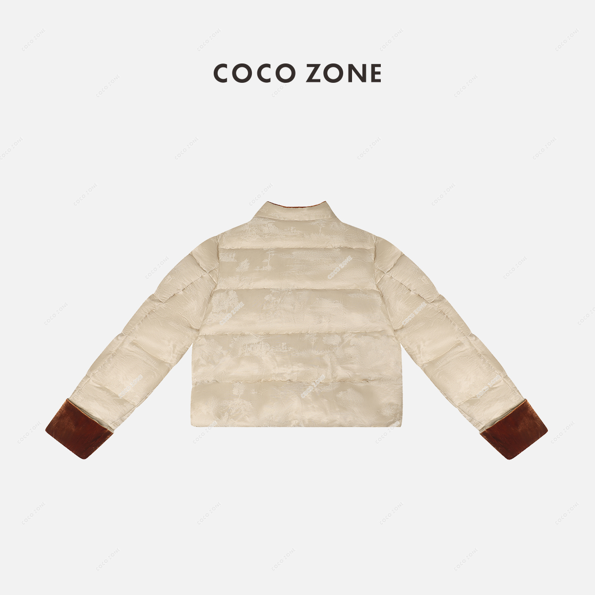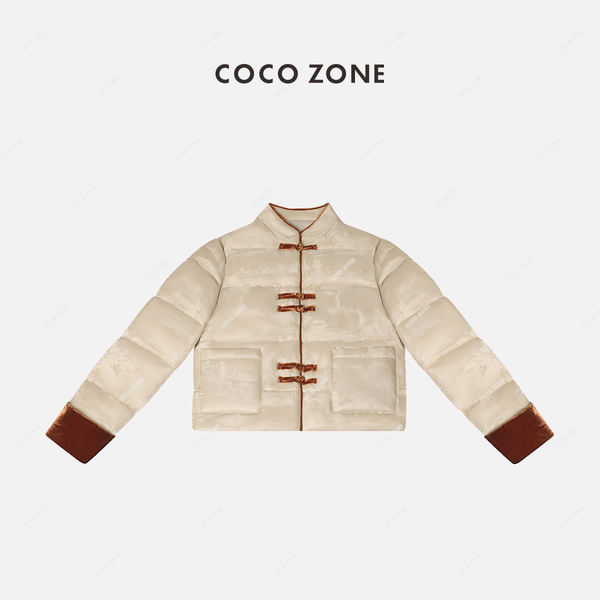 COCO ZONE90鹅绒复古国风提花盘扣撞色设计感立领羽绒服23C30805