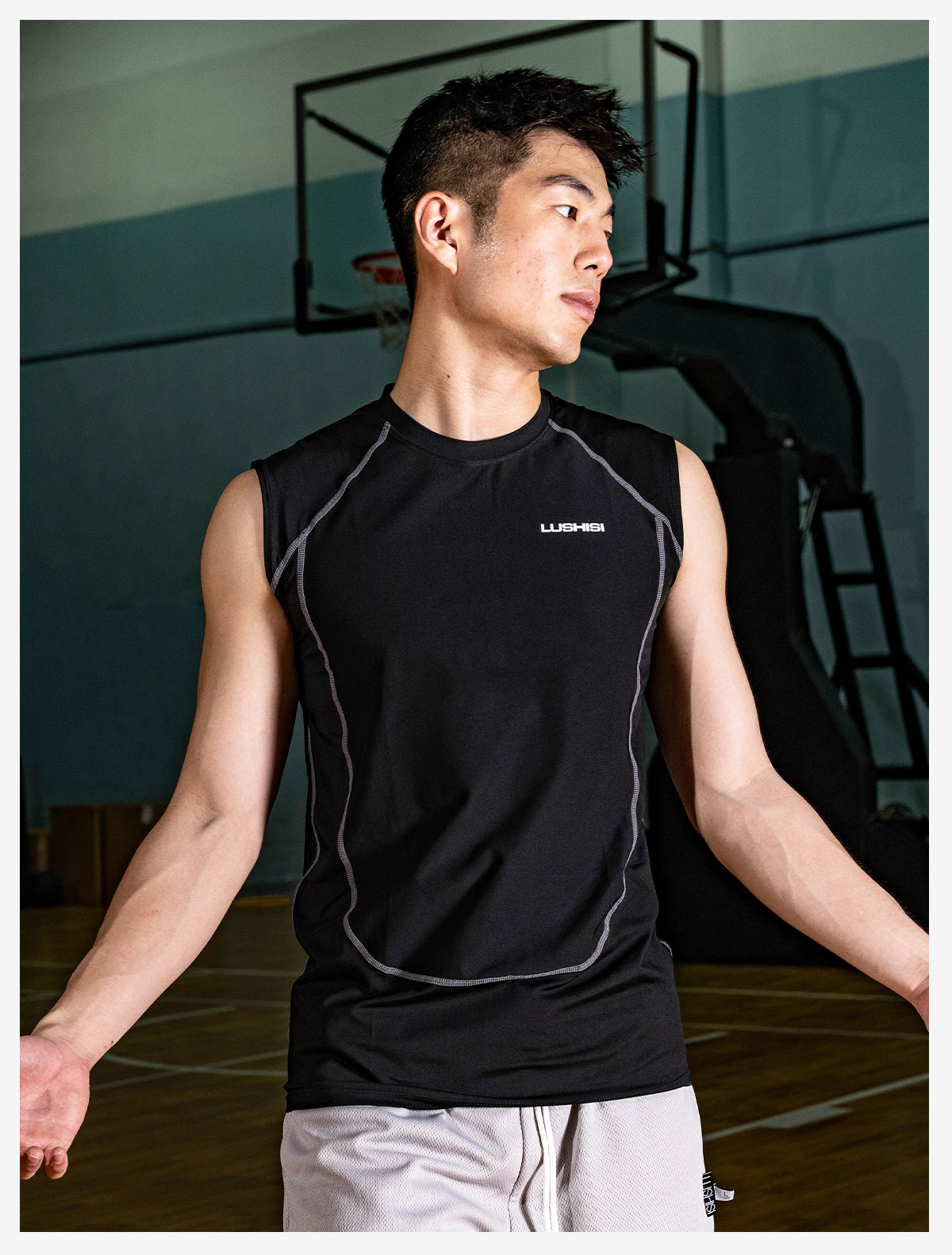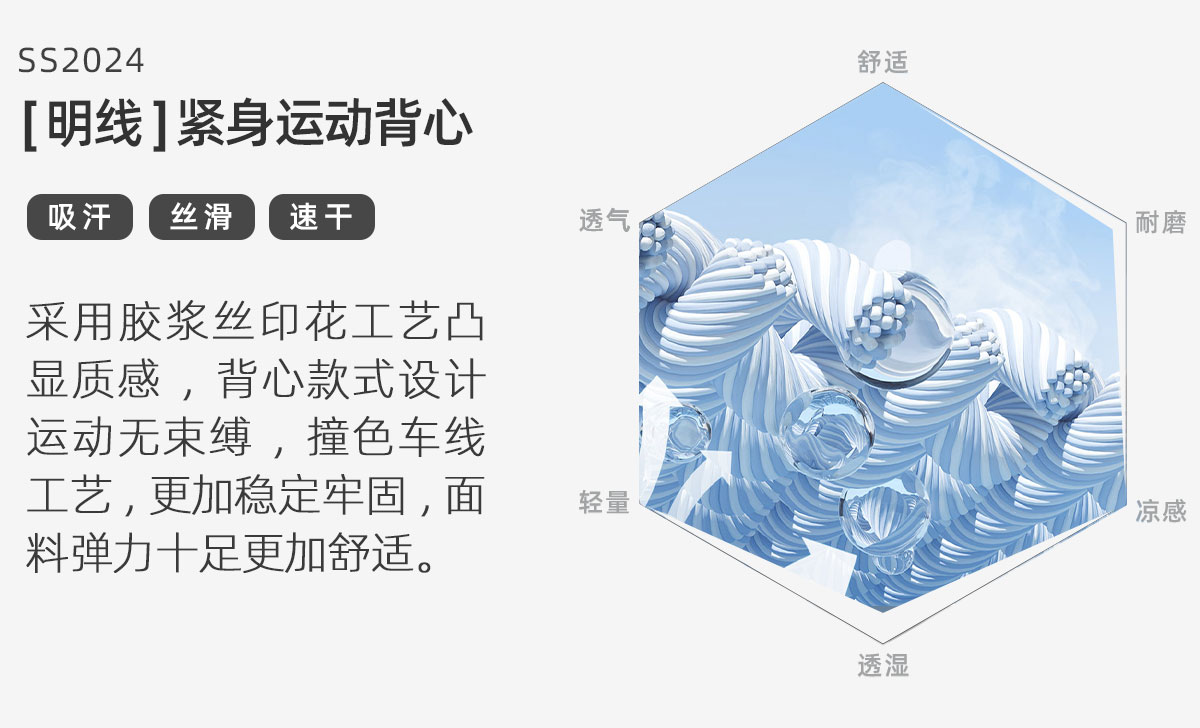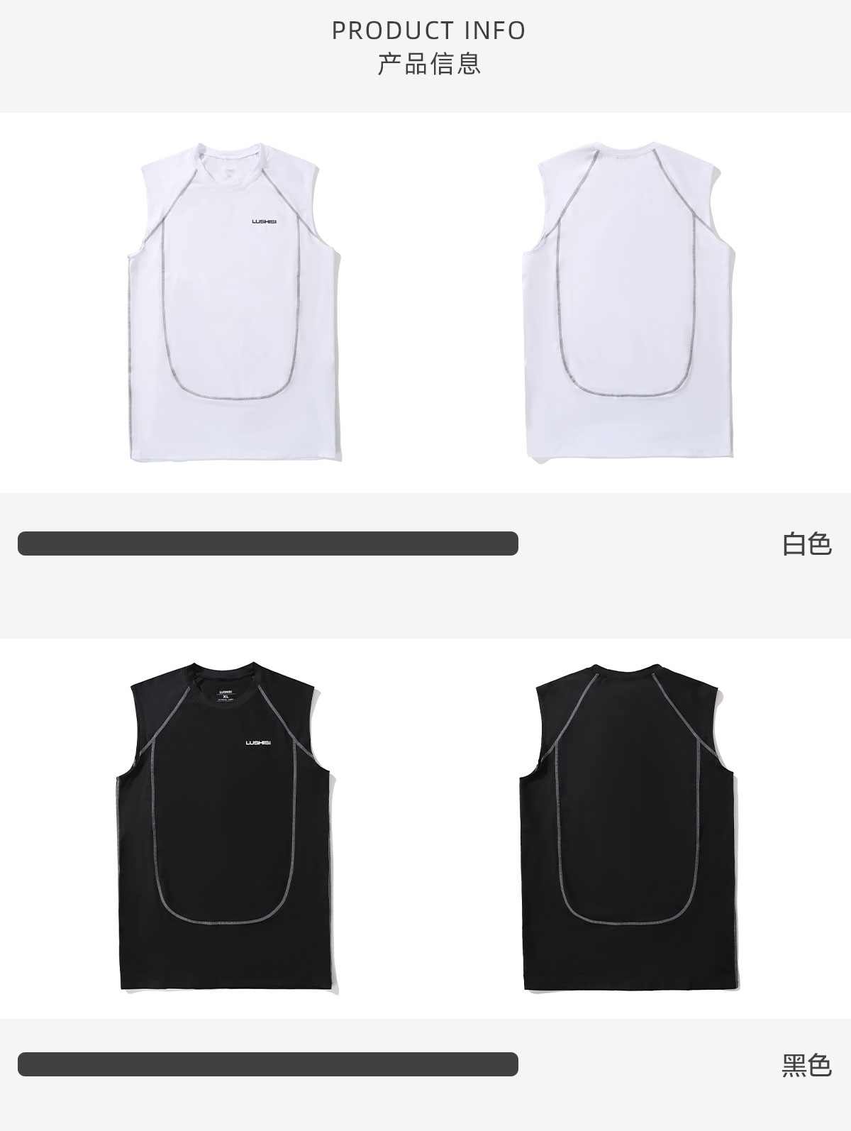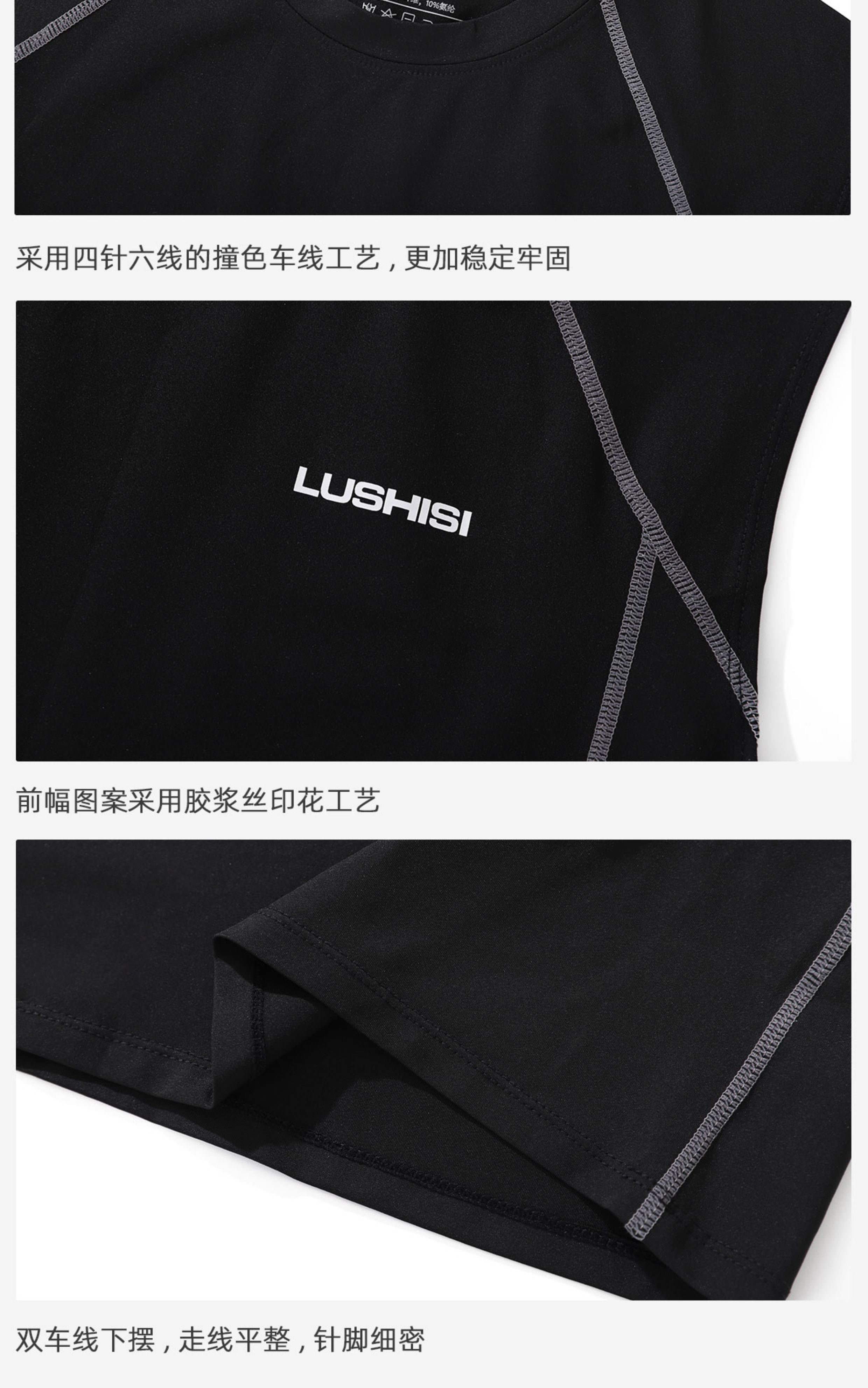 LUSHISI「坎肩背心」明线夏季训练服速干运动凉感紧身无袖t恤男女