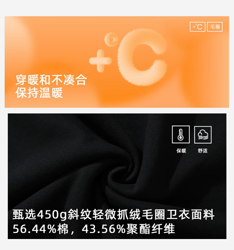 录士LUSHISI盛开连帽卫衣365g重磅抓绒保暖恒温暖皮宽松落肩版型