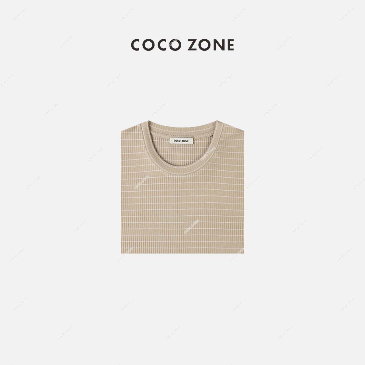 COCO ZONE 2023夏新款经典款圆领条短袖T恤上衣 23C18690