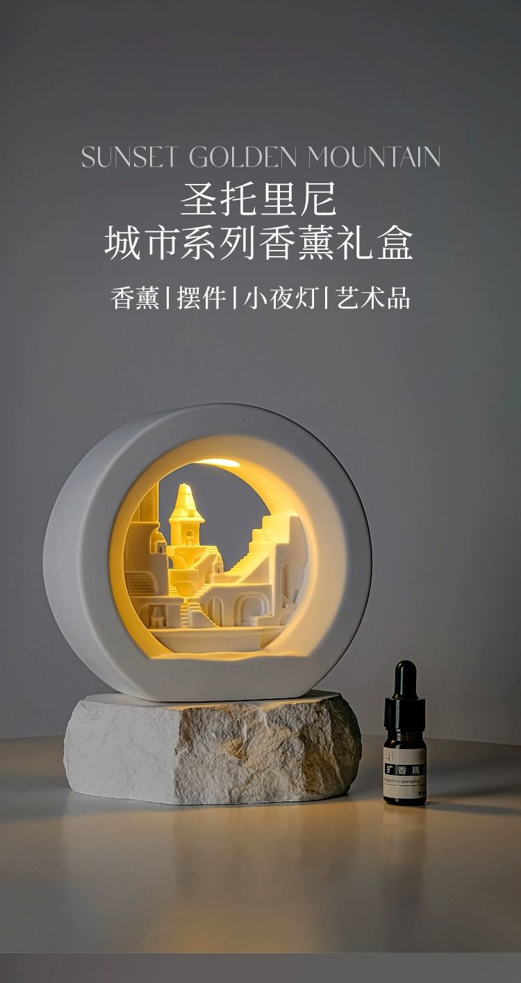 氛围礼物【圣托里尼香薰礼盒】 小夜灯创意摆件 小众香氛香薰礼盒 扩香石香薰精油