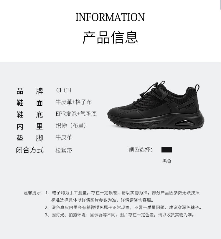 CHCH平衡鞋2024秋冬新品牛皮拼接气垫底运动休闲男鞋CO2A2011