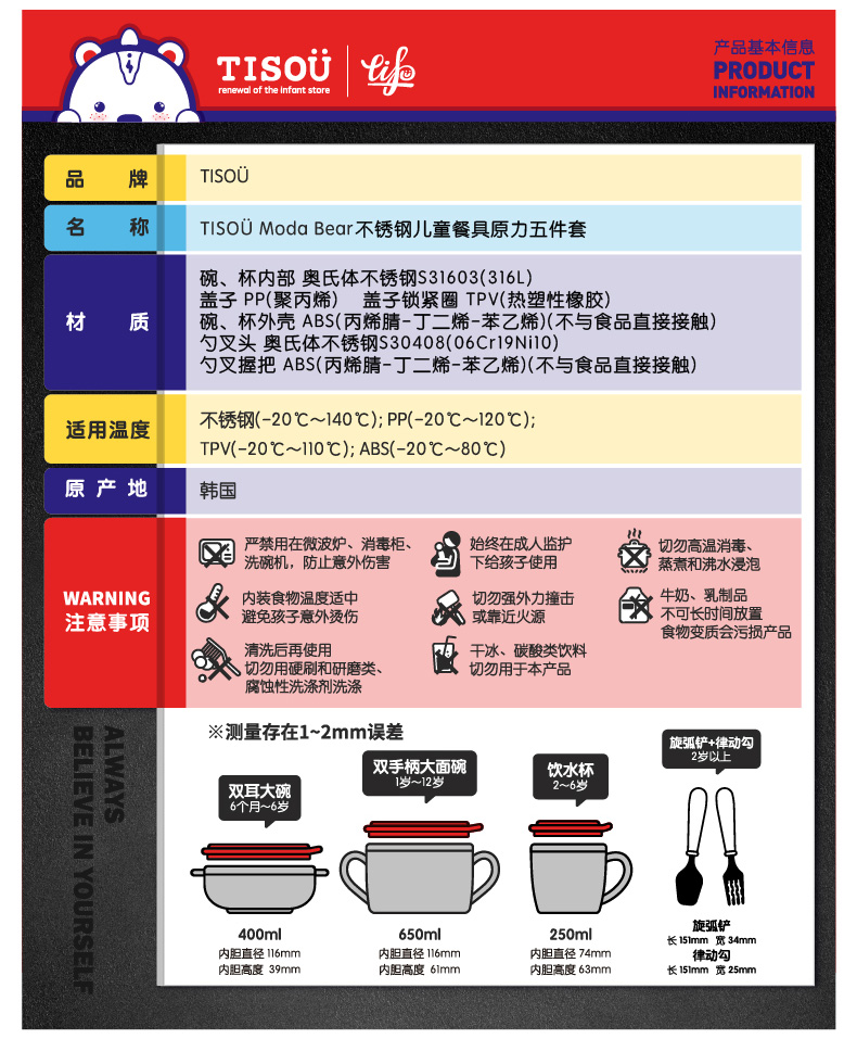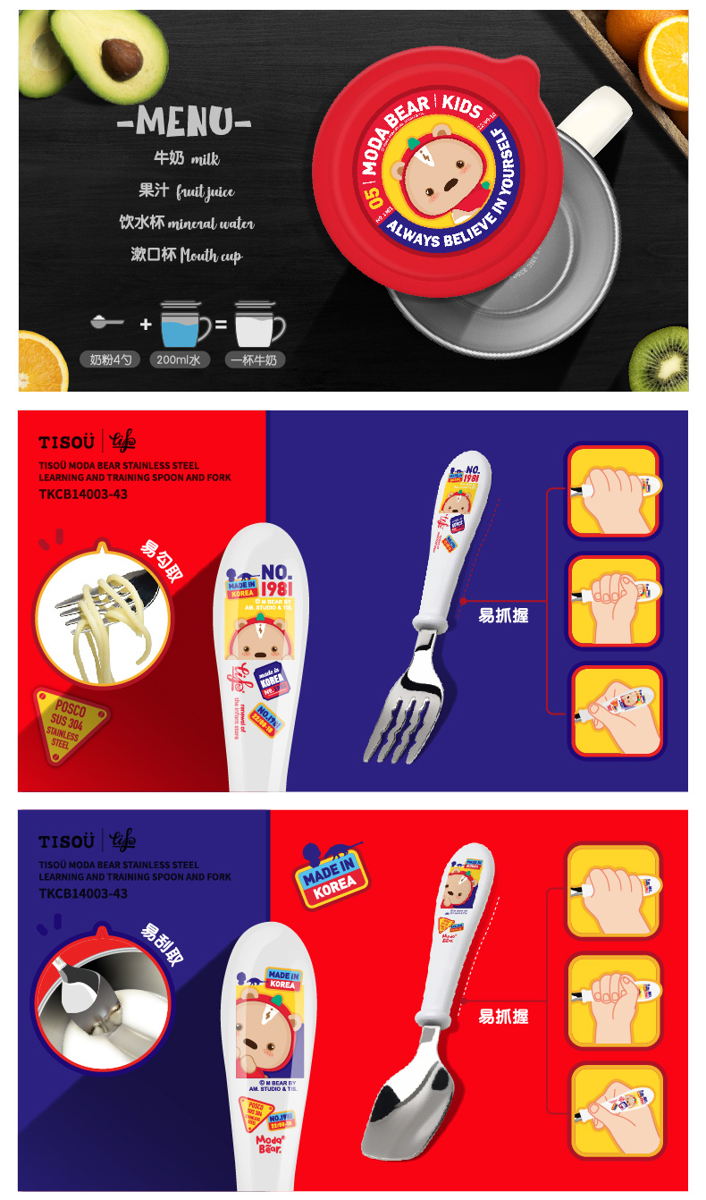 TISOü Moda Bear不锈钢儿童餐具原力五件套