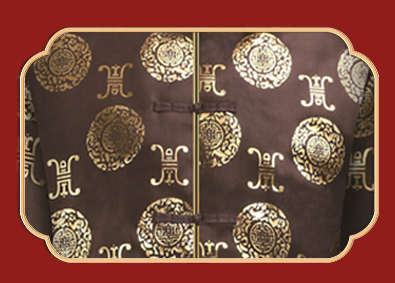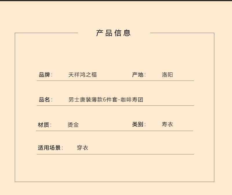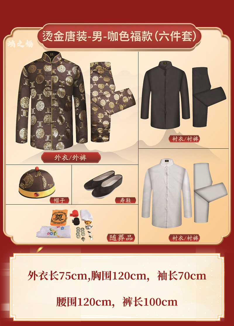 男士寿衣寿服烫金唐装“咖啡寿团”薄款寿衣六件套