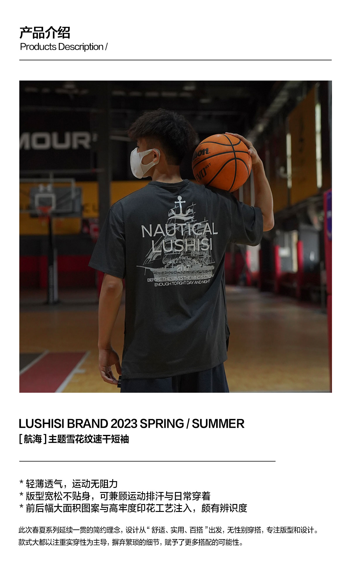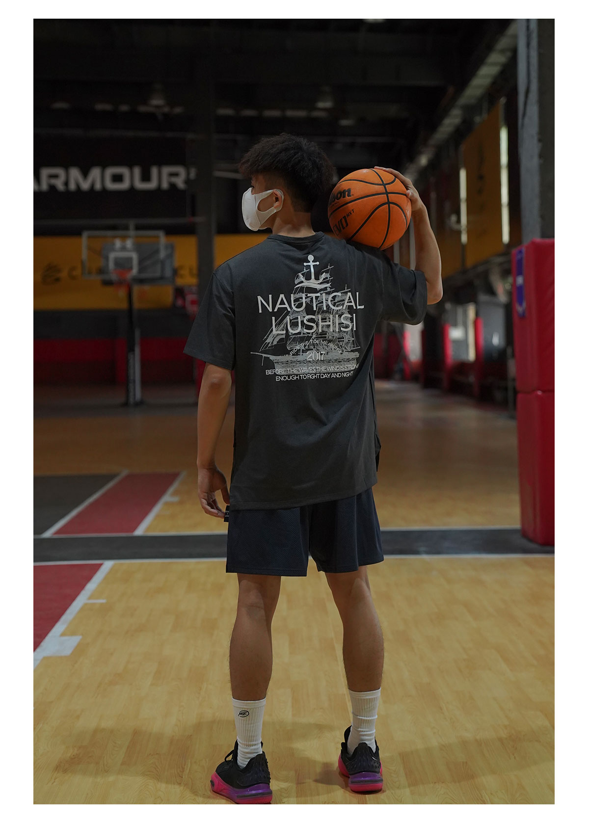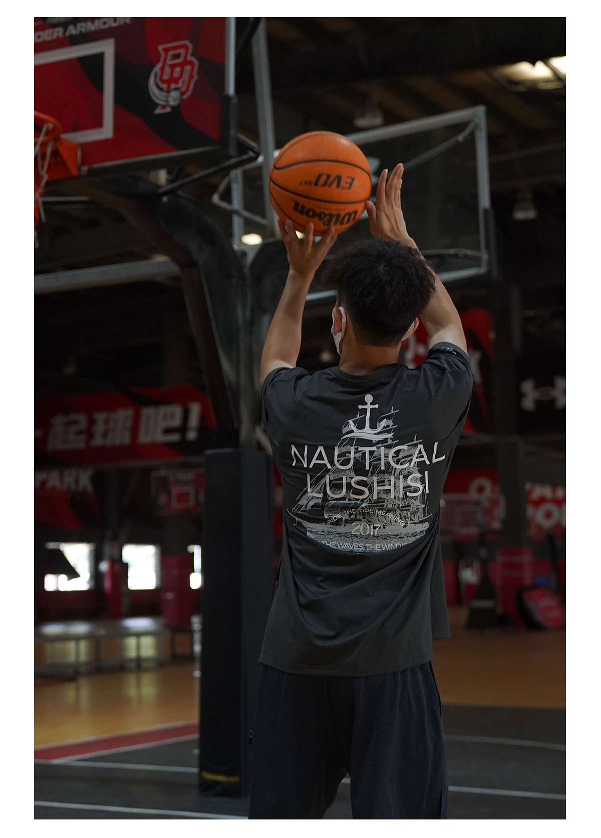 LUSHISI夏季新款美式篮球训练服投篮运动t恤男短袖宽松透气[航海]