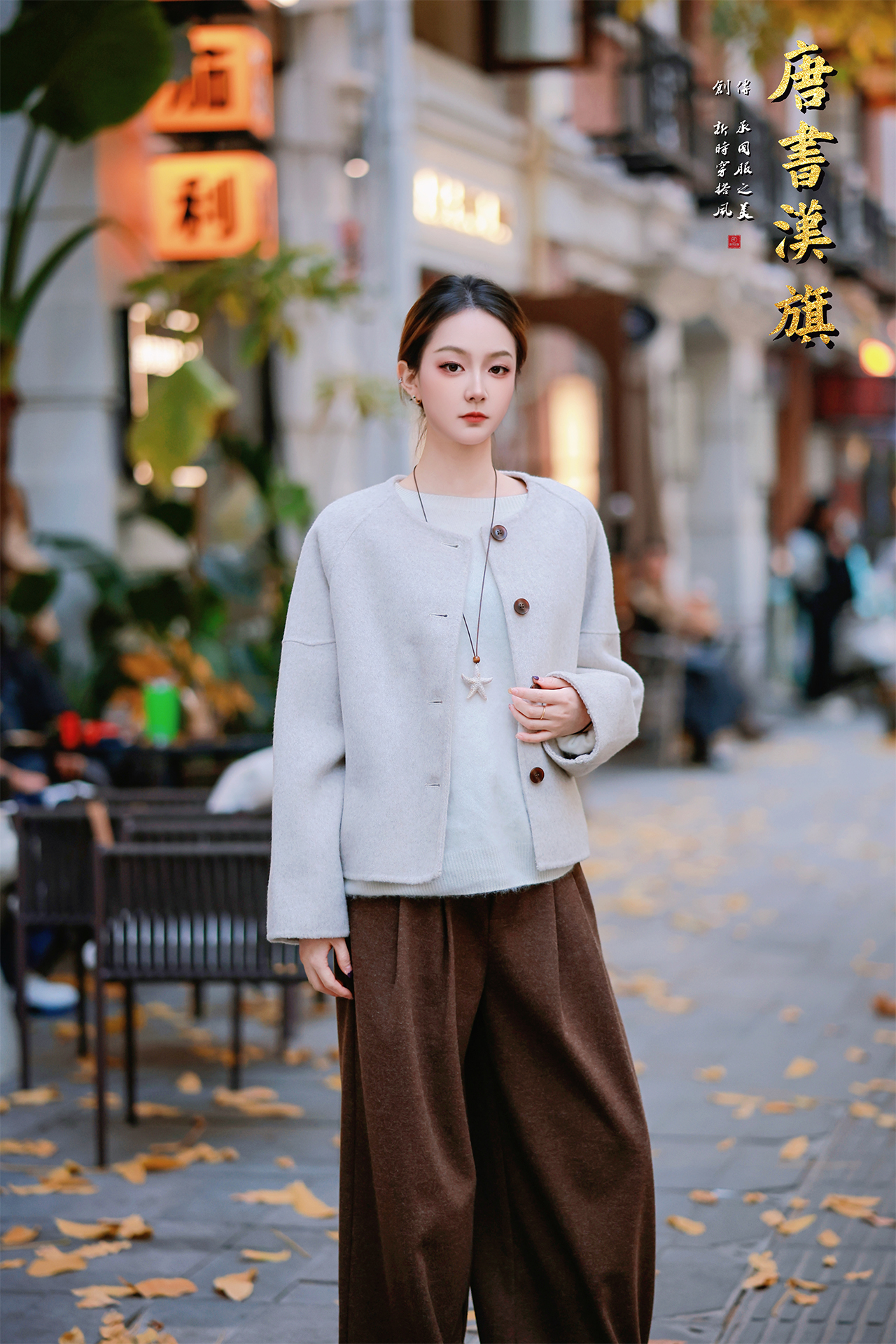 【简系轻暖(羊毛)】精选羊毛混纺面料,浅灰色调温柔百搭,触感软糯亲肤,秋冬穿着轻盈又保暖。无领圆襟搭配复古木质纽扣,利落剪裁打造宽松廓形,不挑身材,藏肉显瘦还能修饰肩颈线条。