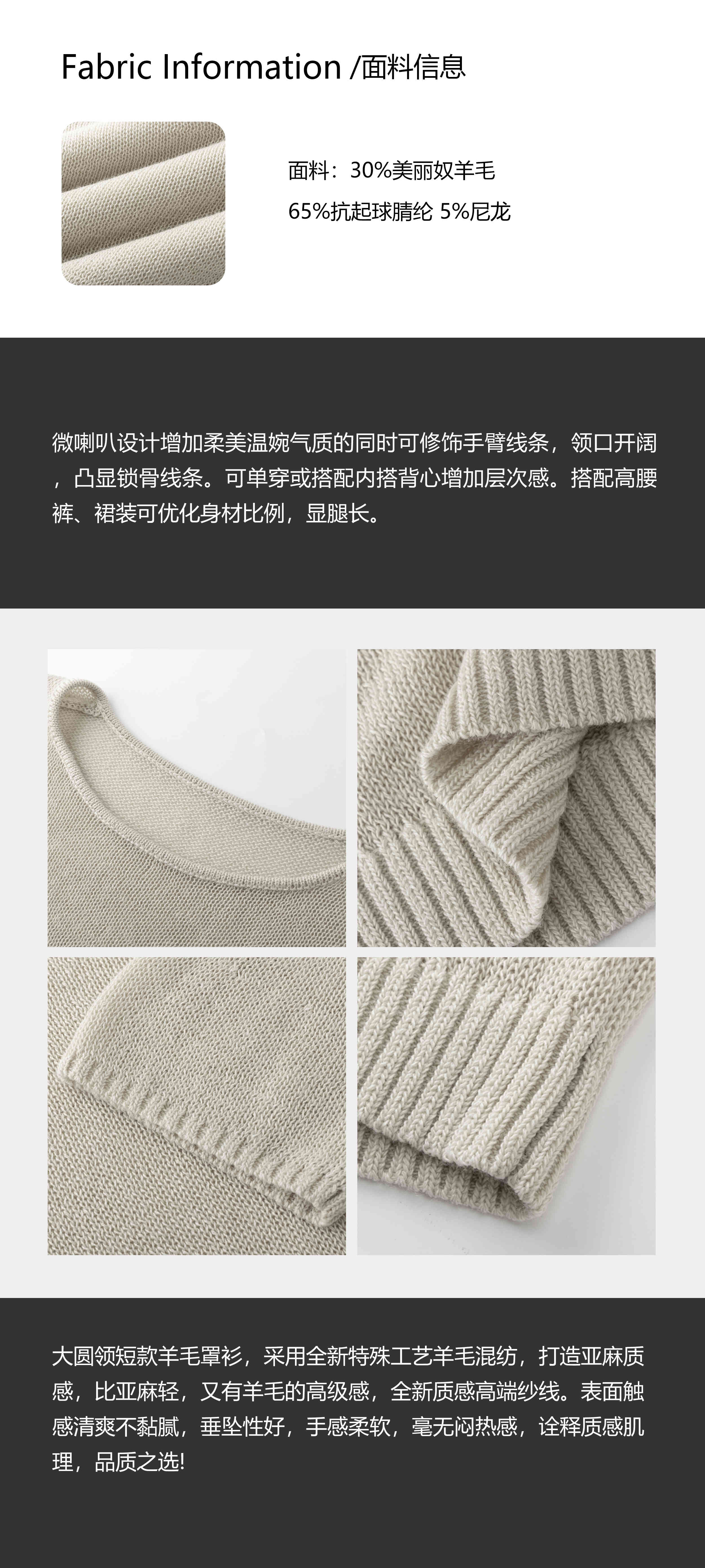 COCO ZONE 刘一一【羊毛混纺】微喇叭袖子修身纯色毛织上衣CD2A1393