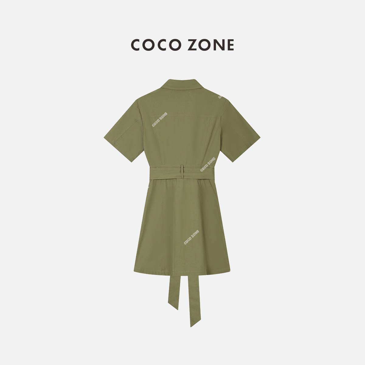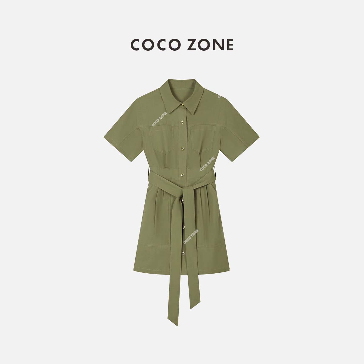 COCO ZONE 通勤风气质短袖POLO领腰帯收腰 23C18784