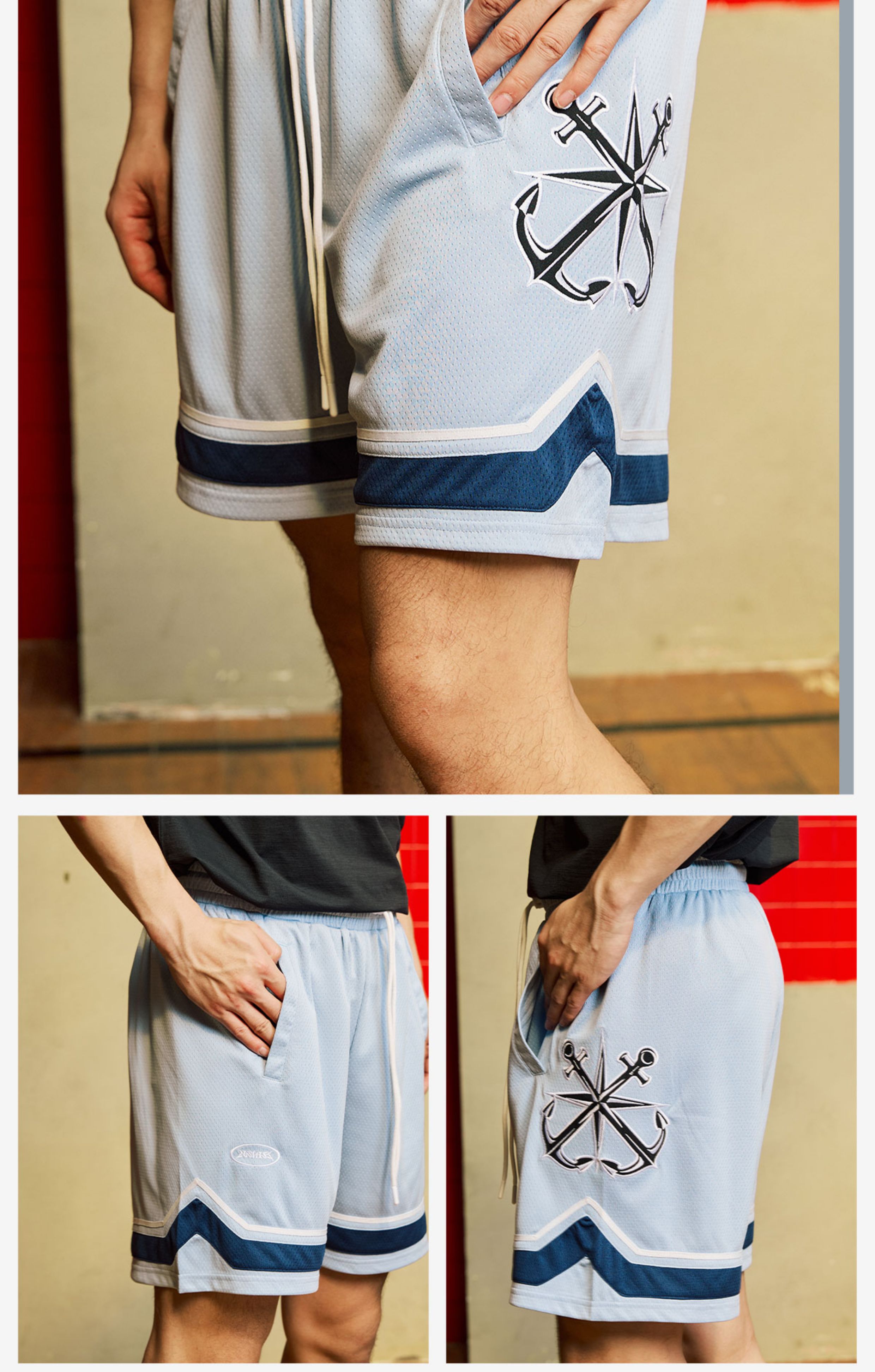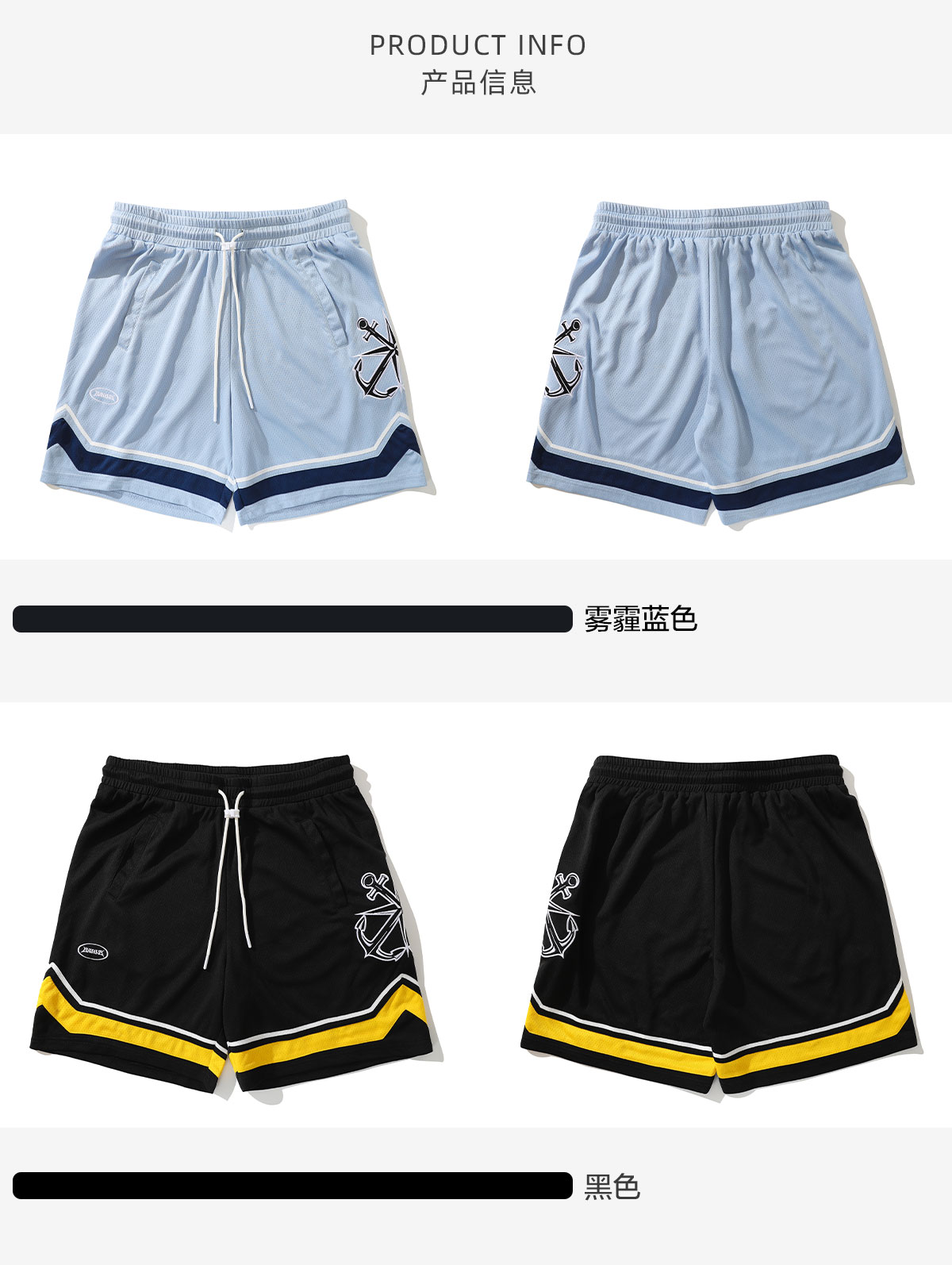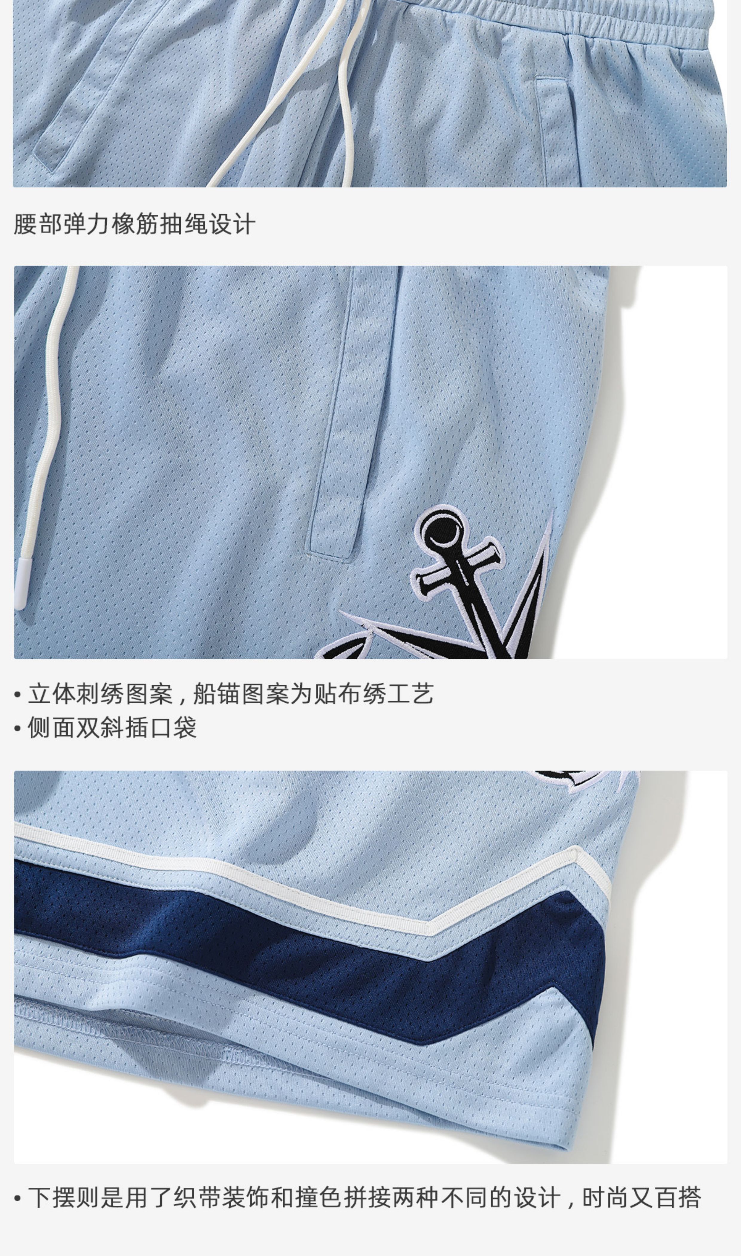 LUSHISI船锚刺绣主题美式不过膝运动短裤篮球裤跑步健身五分裤男