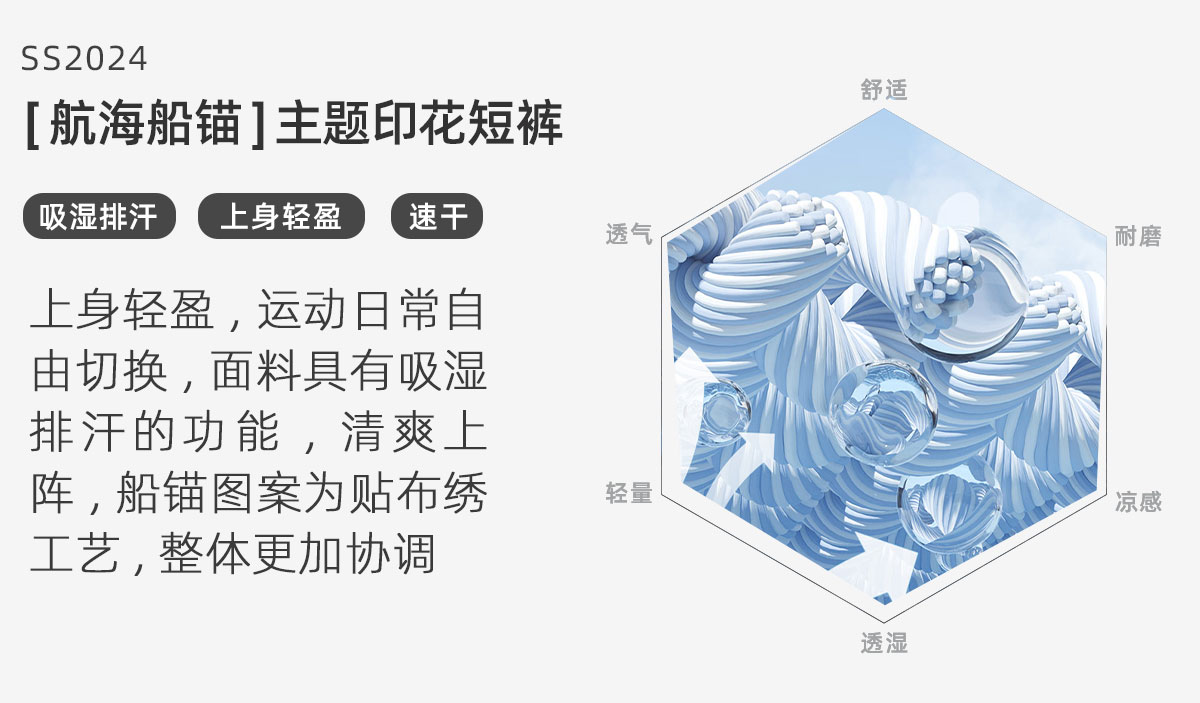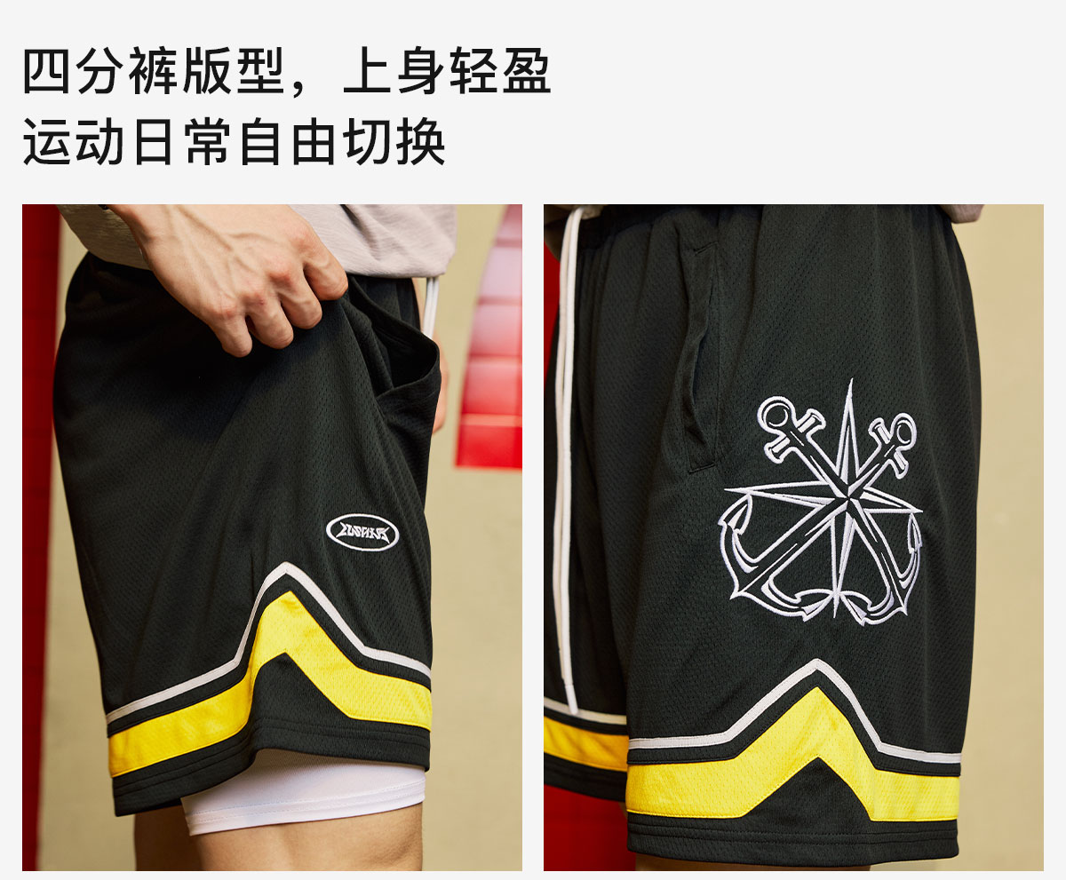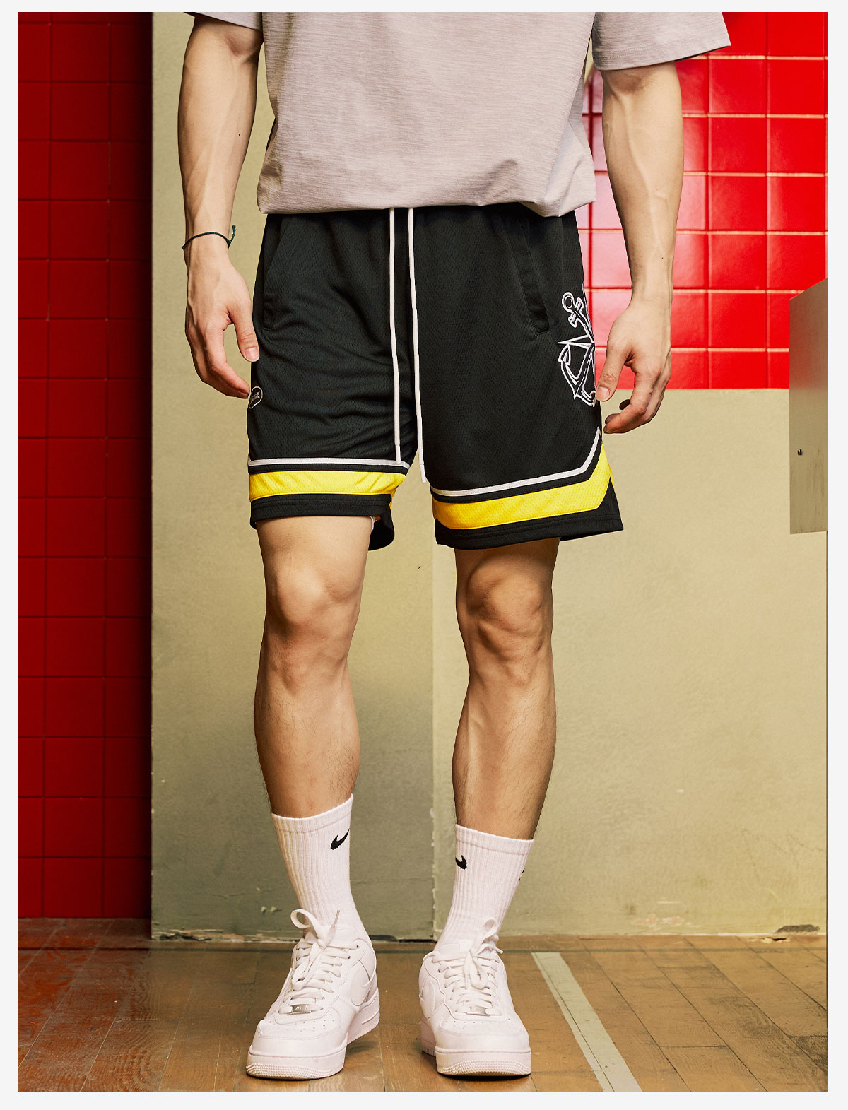 LUSHISI船锚刺绣主题美式不过膝运动短裤篮球裤跑步健身五分裤男