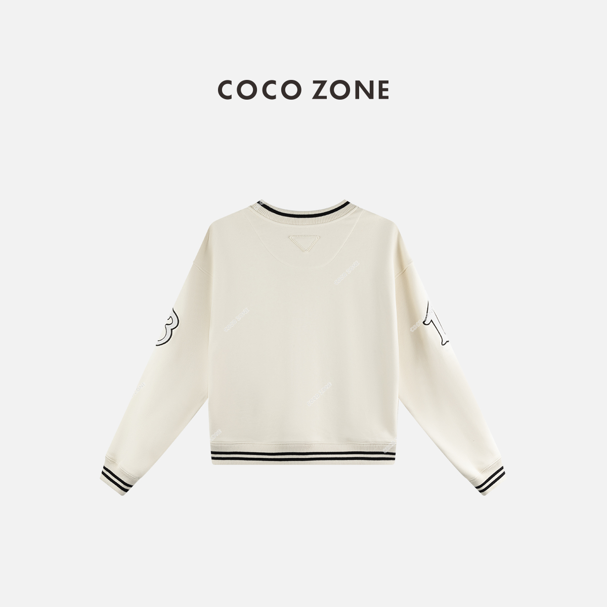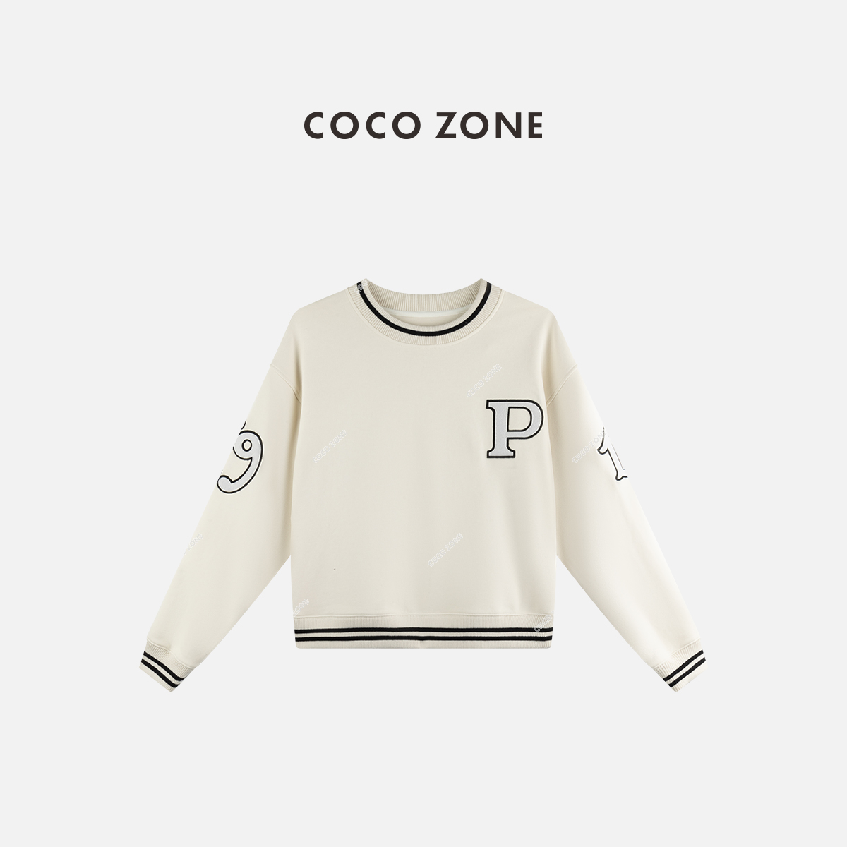 COCO ZONE 设计感撞色圆领卫衣简约字母长袖上衣CC2C2013