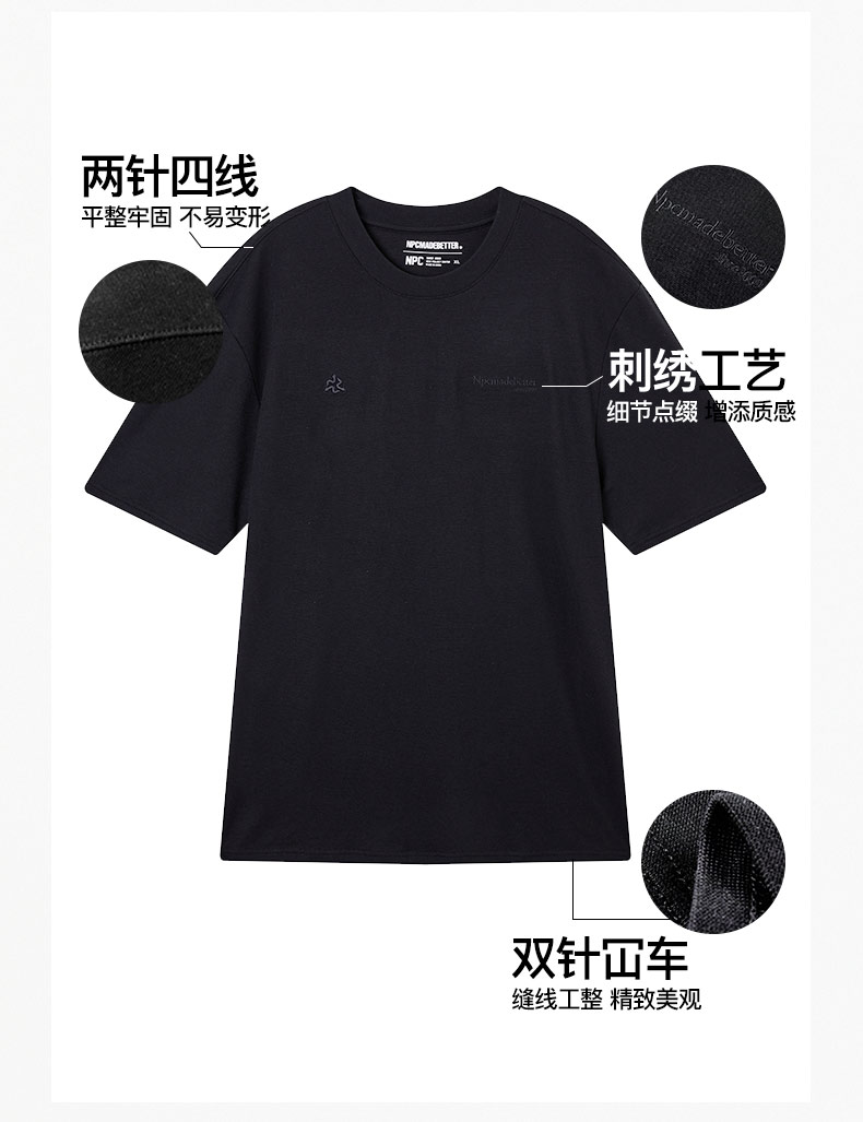 NPC潮牌刺绣logo【天丝羊毛】圆领短袖T恤男亲肤吸湿透气NP52TE30