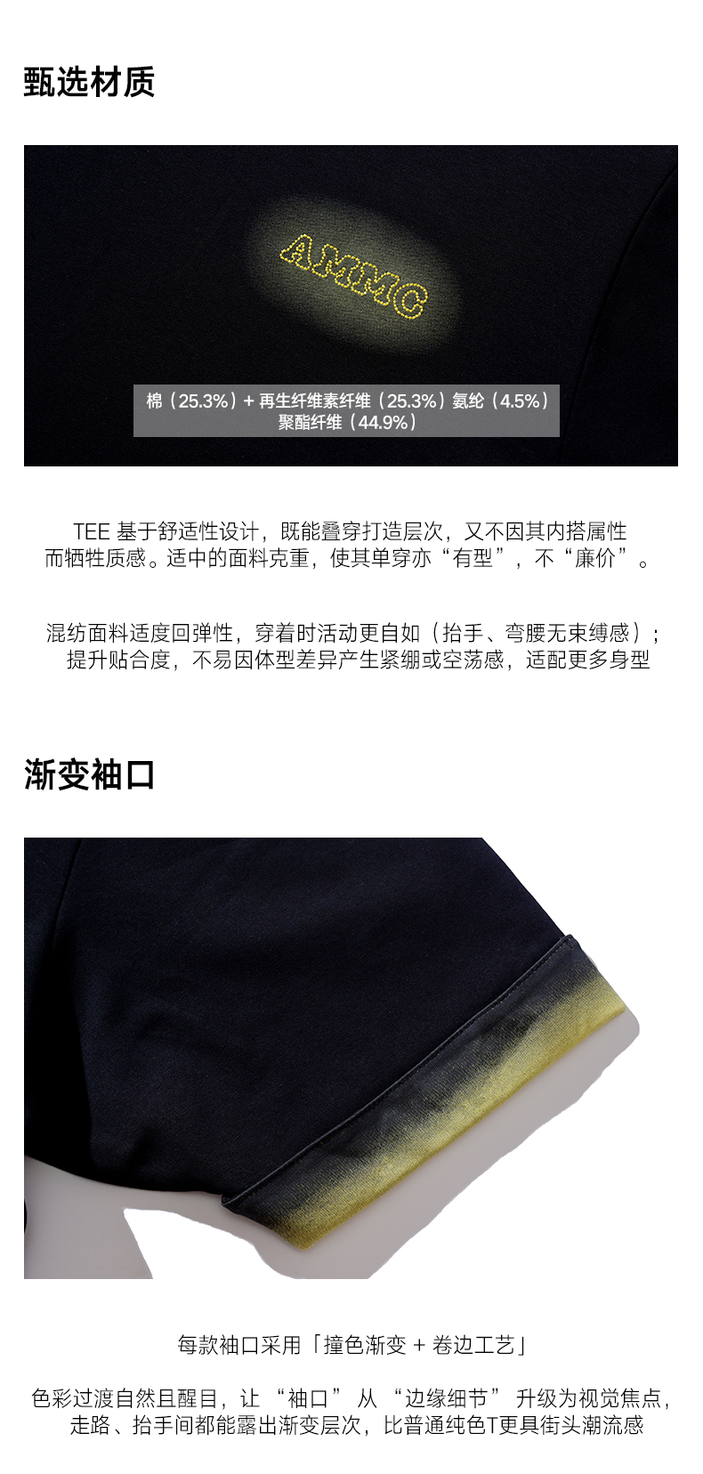 a minimal club宽松圆领渐变短袖T恤休闲街头时尚百搭夏AM55TE08