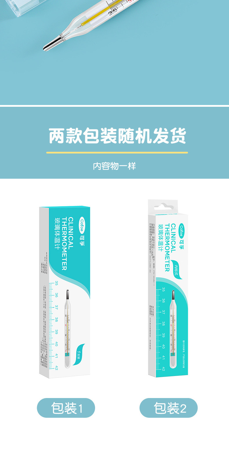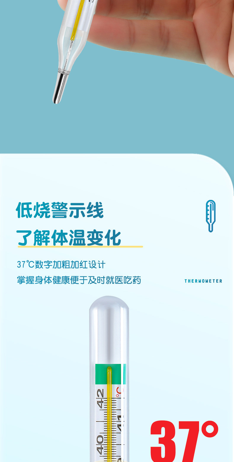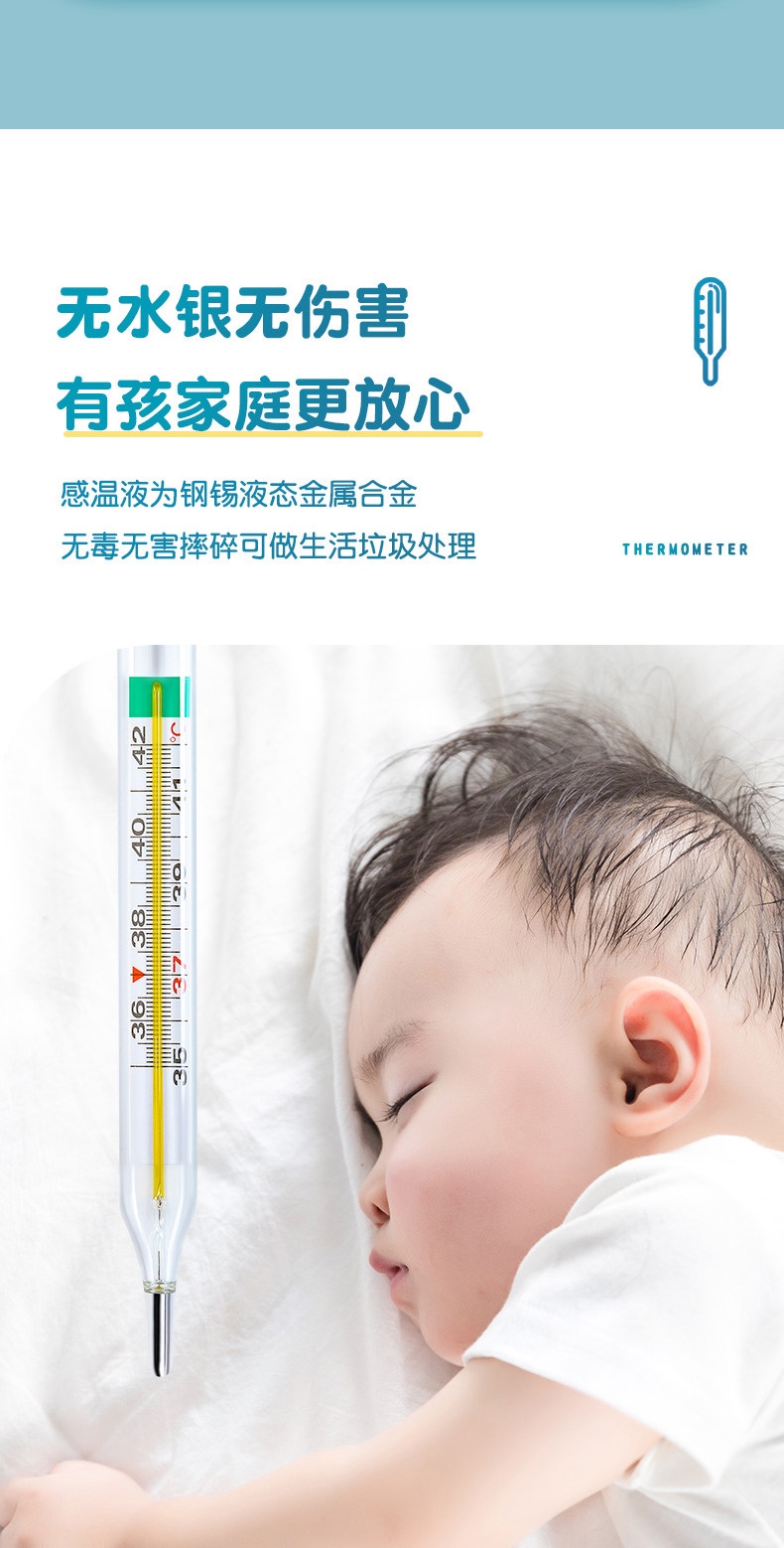 可孚医用无汞玻璃体温计无水银测温表高精准家用测人温度婴儿腋下