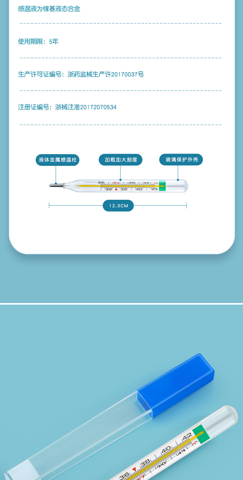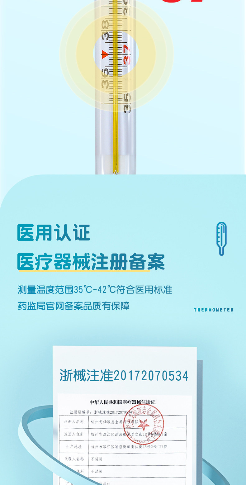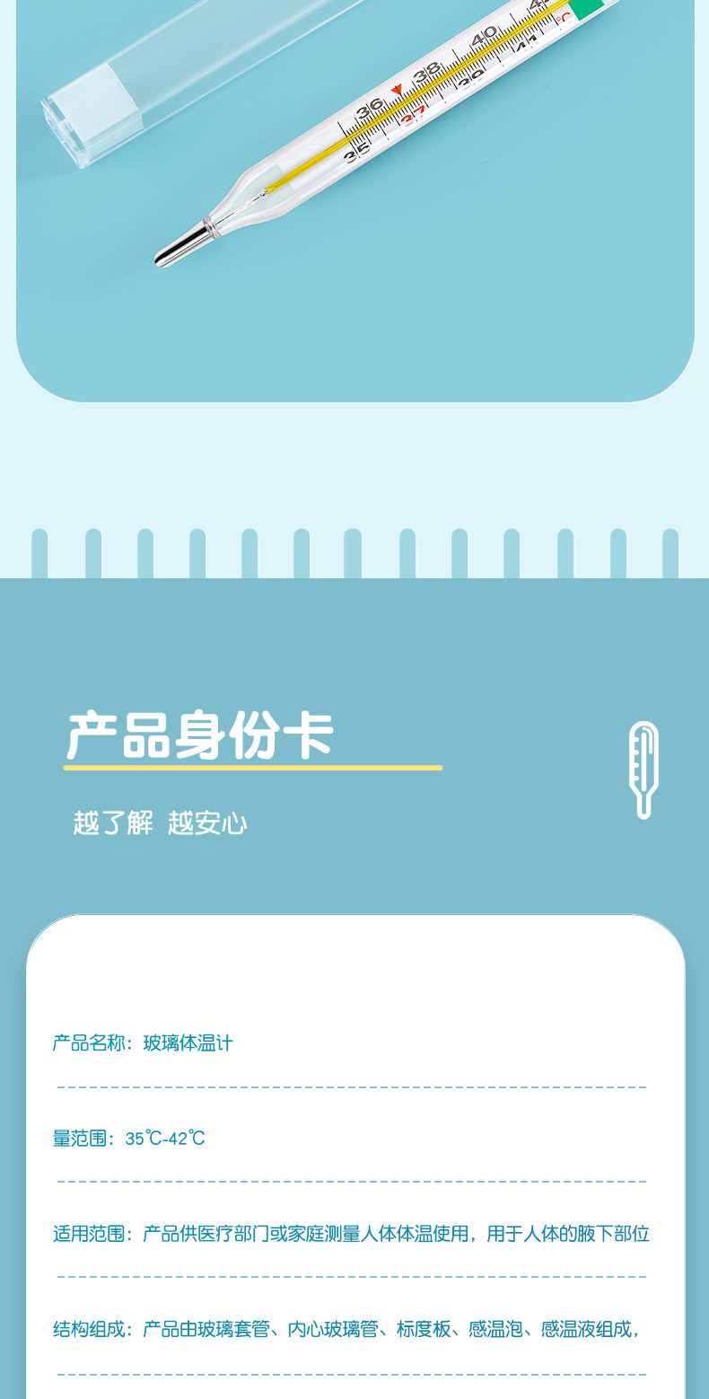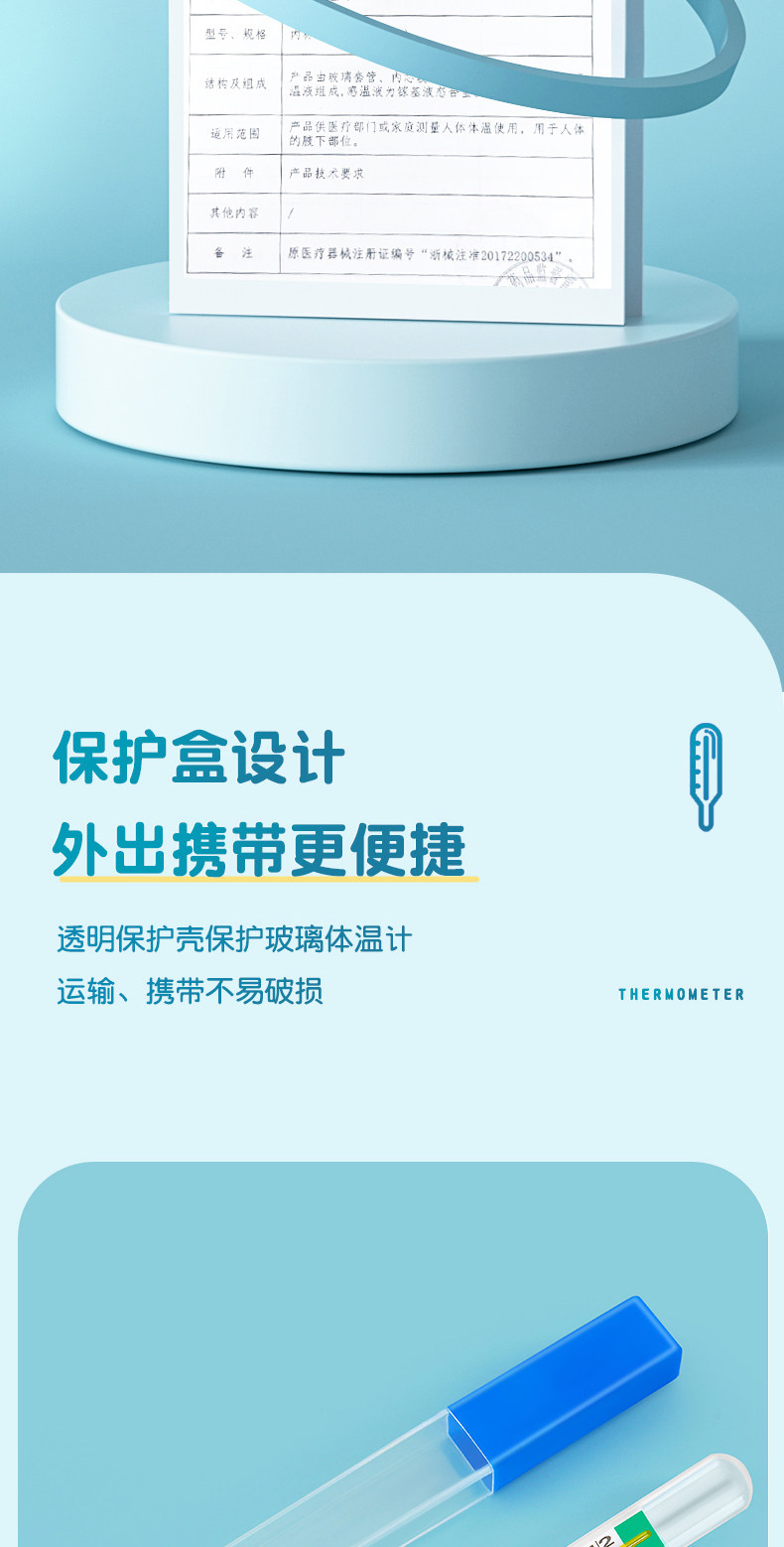 可孚医用无汞玻璃体温计无水银测温表高精准家用测人温度婴儿腋下