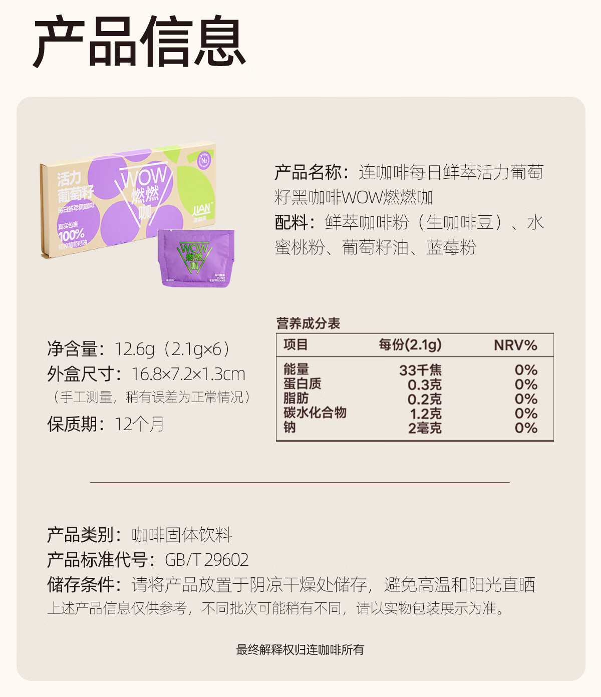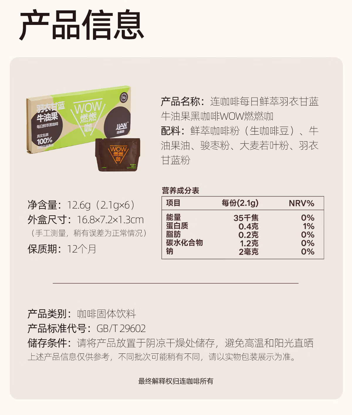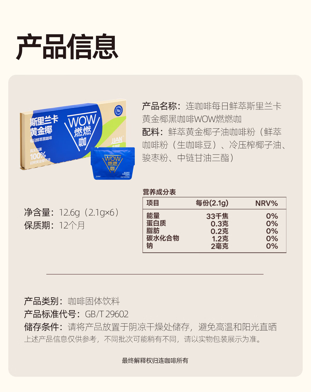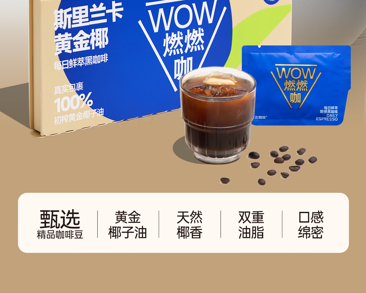 连咖啡WOW燃燃咖速溶美式浓缩黑咖啡粉 2.1g*6袋