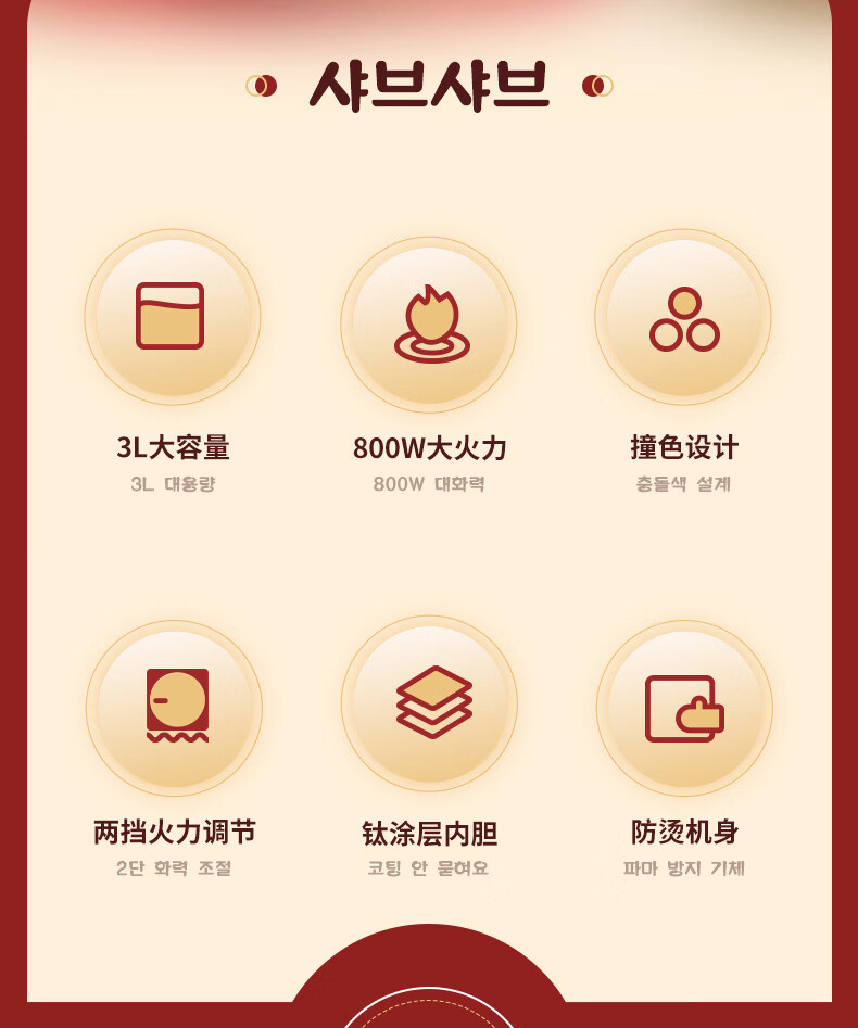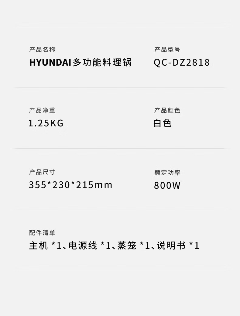 HYUNDAI 现代电煮锅 3L QC-HHG153