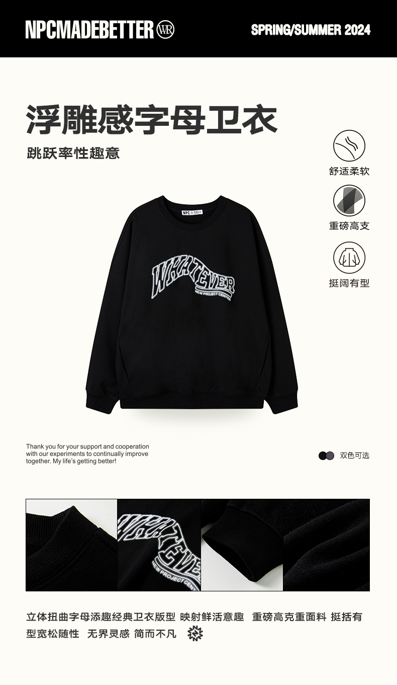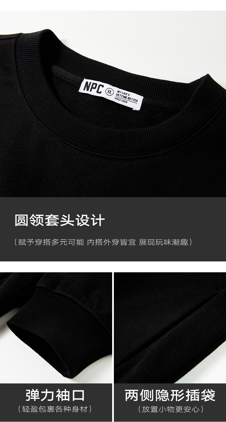 NPC潮牌高克重宽松立体字母印花休闲圆领卫衣男NP41ST21