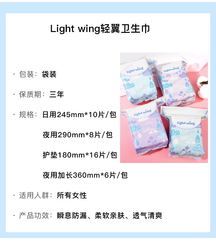 韩国LIGHTWING轻翼卫生巾夜用加长360MM*6片