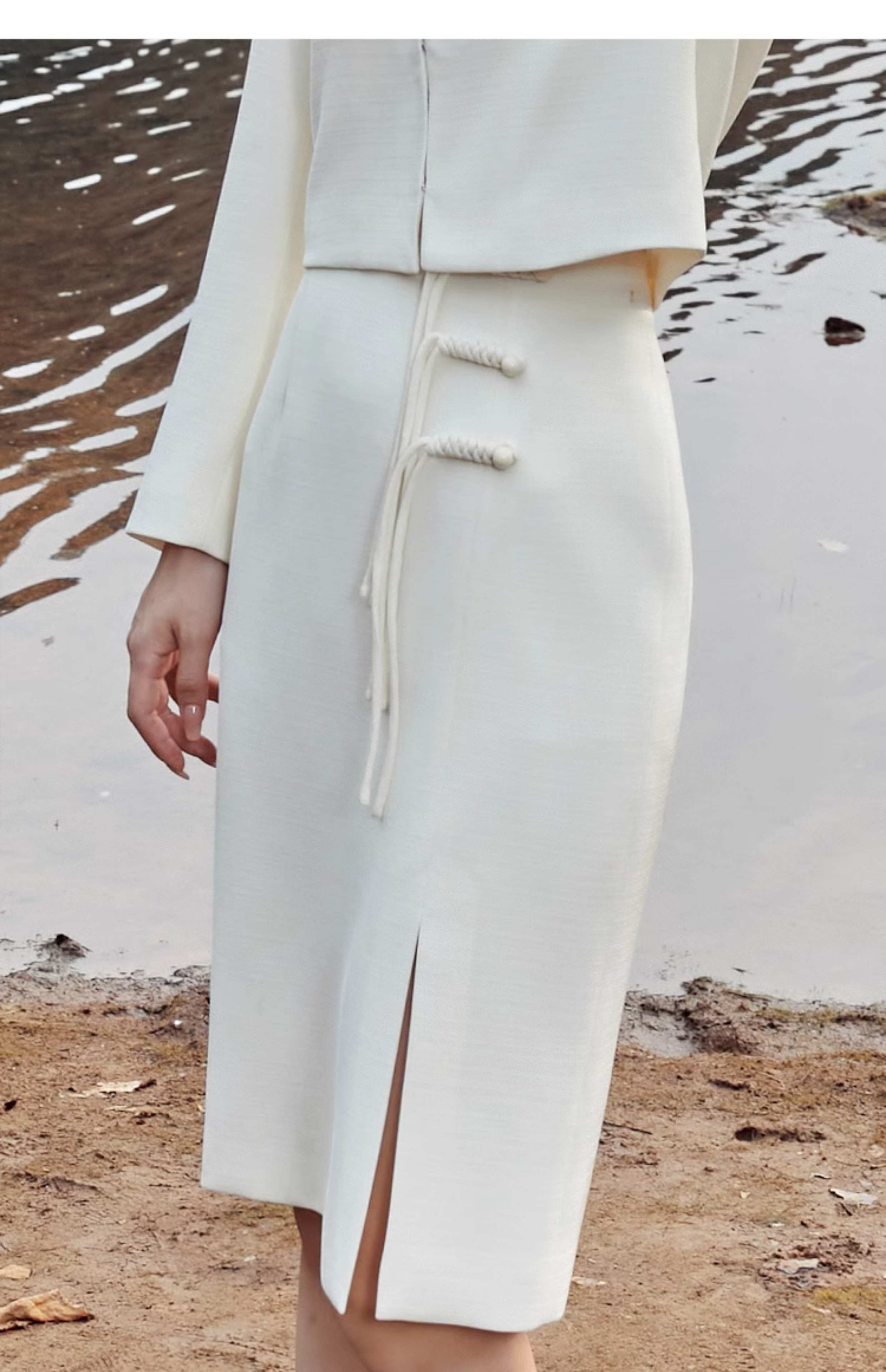 扶摇 新中式女装半身裙黑色流苏盘扣新国潮风高腰侧开叉裙子