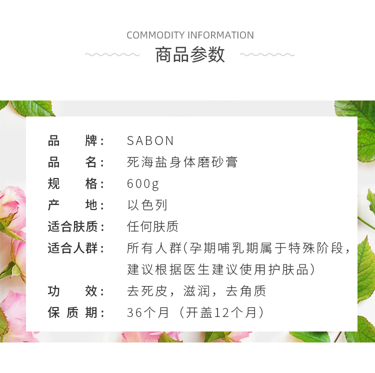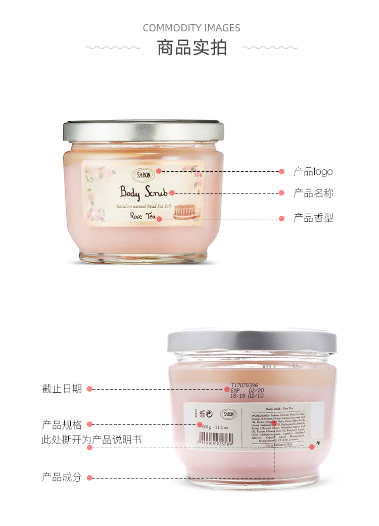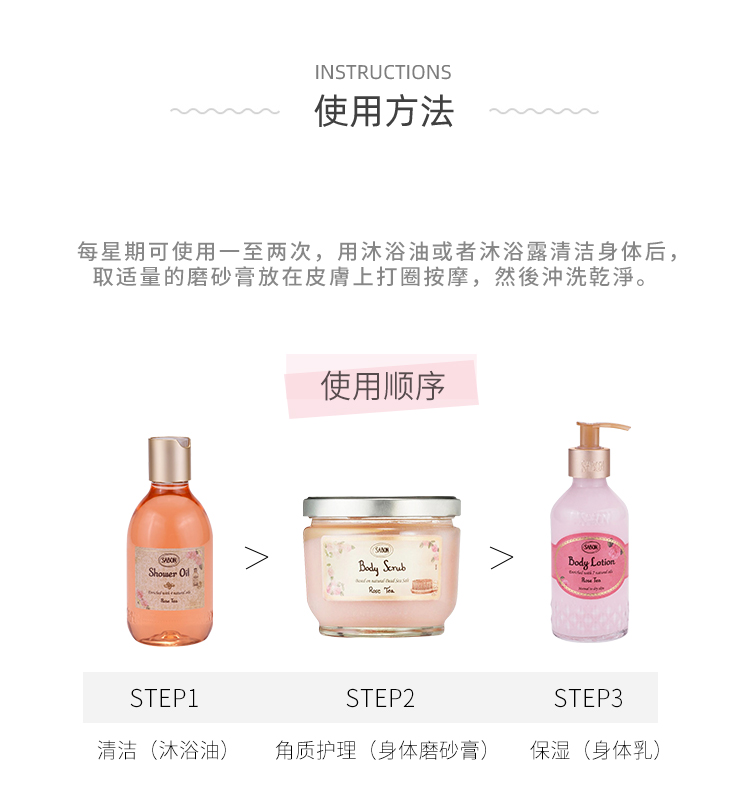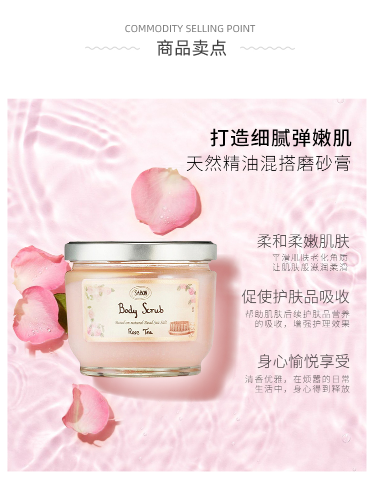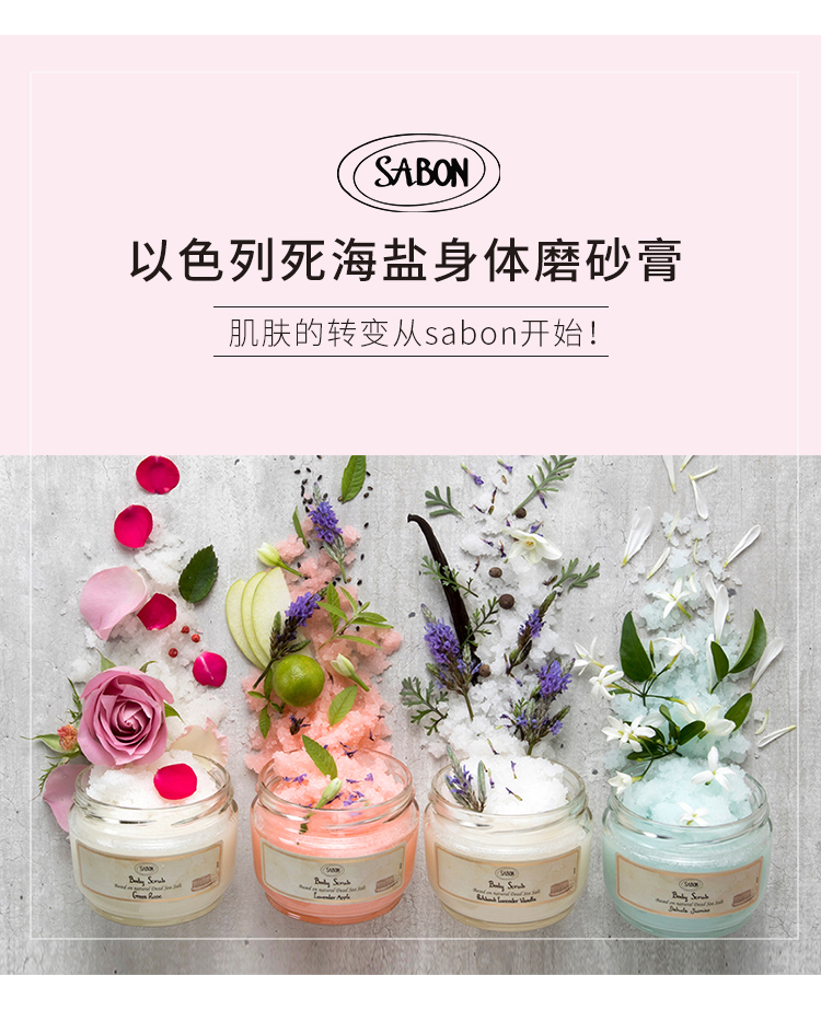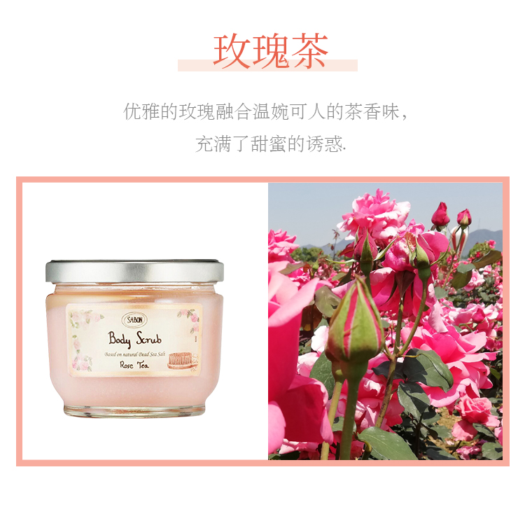 Sabon身体磨砂膏600g去鸡皮去角质玫瑰茶全身嫩白浴盐