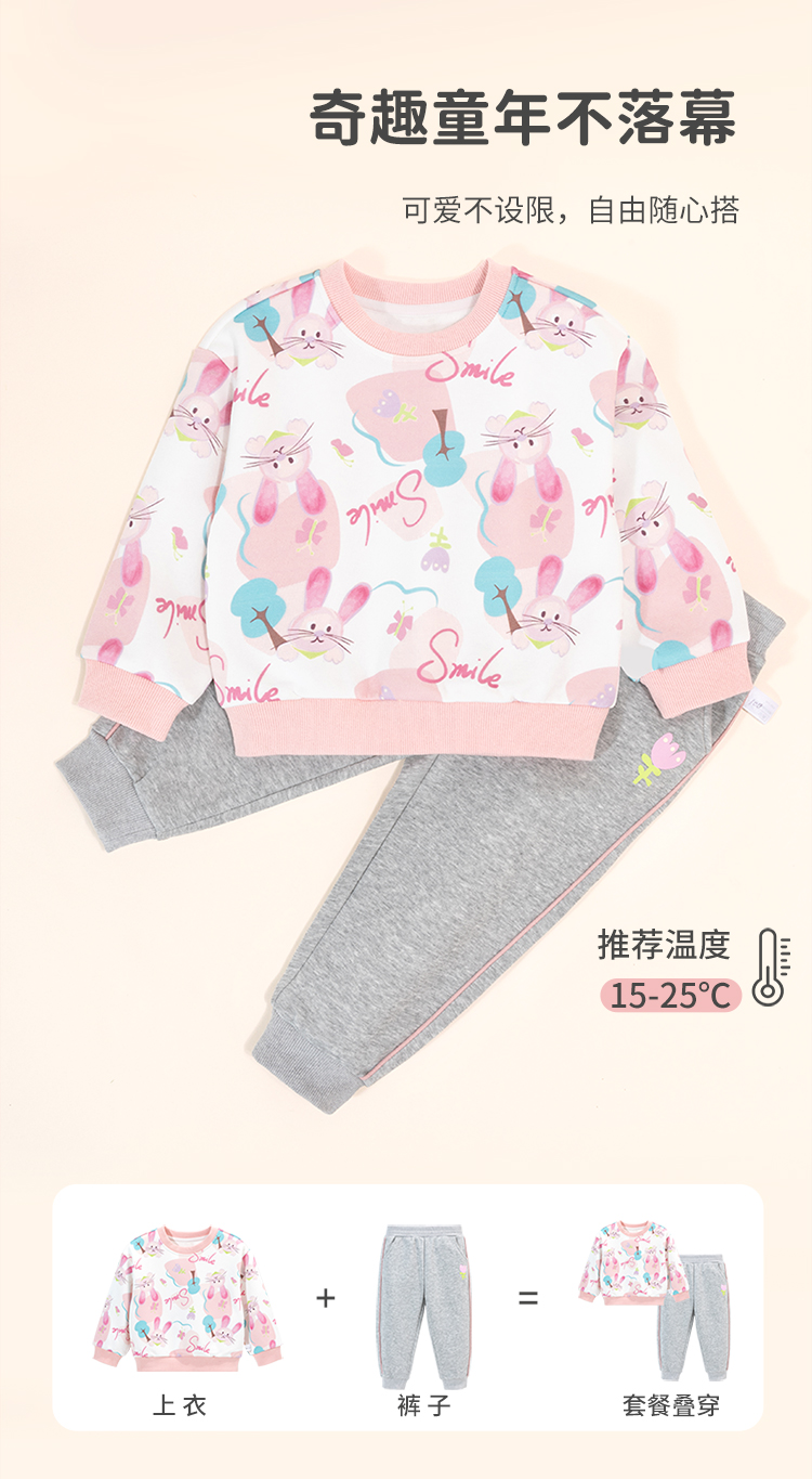 贝贝怡童装儿童运动秋装2024新款男女童洋气长裤卫衣套装ZB3DT044