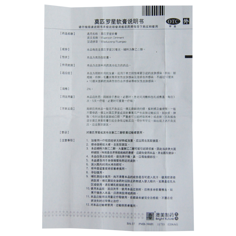 澳琪 莫匹罗星软膏 5g 消炎祛痘皮肤感染毛囊炎乳膏脓疱病