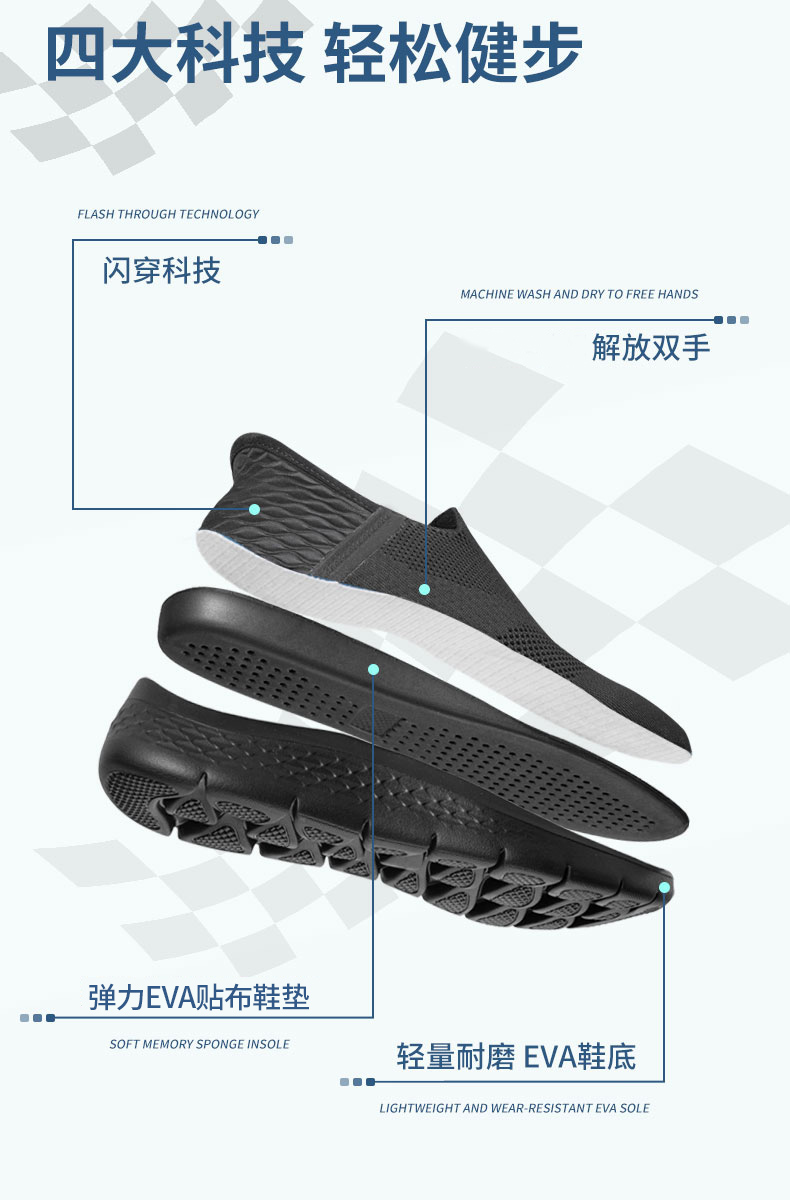 【欧洲百年品牌SaCha萨查闪穿一脚蹬运动鞋】男女同款, 鞋面飞织,舒适透气不闷脚